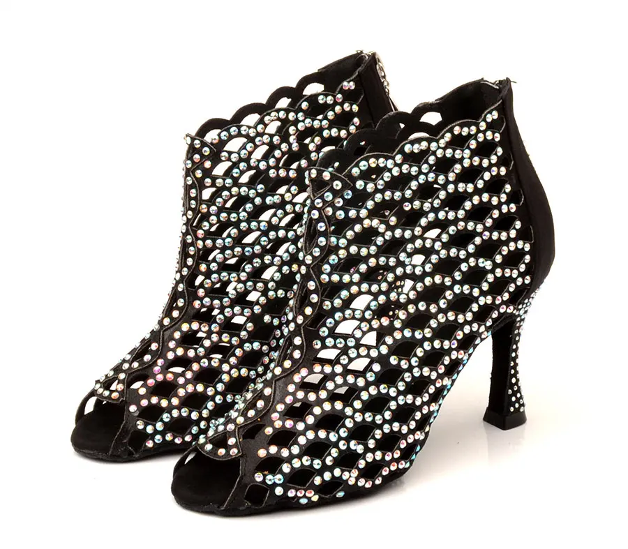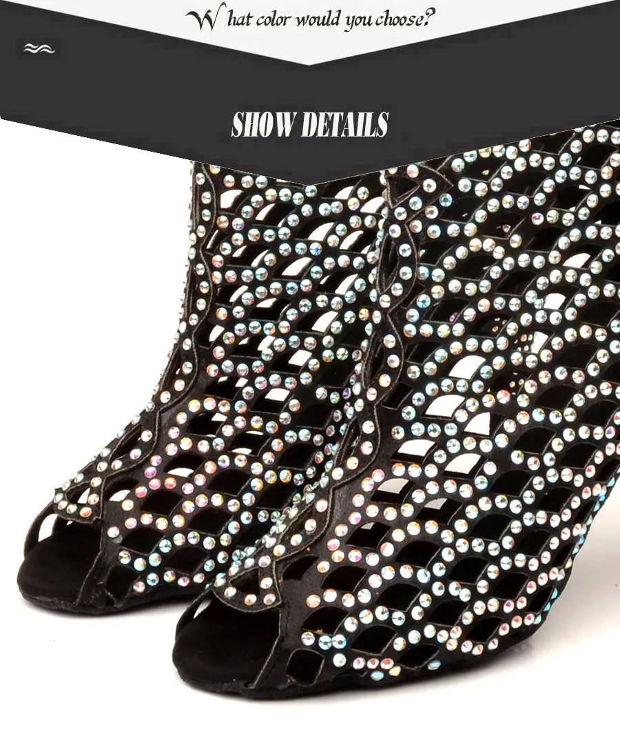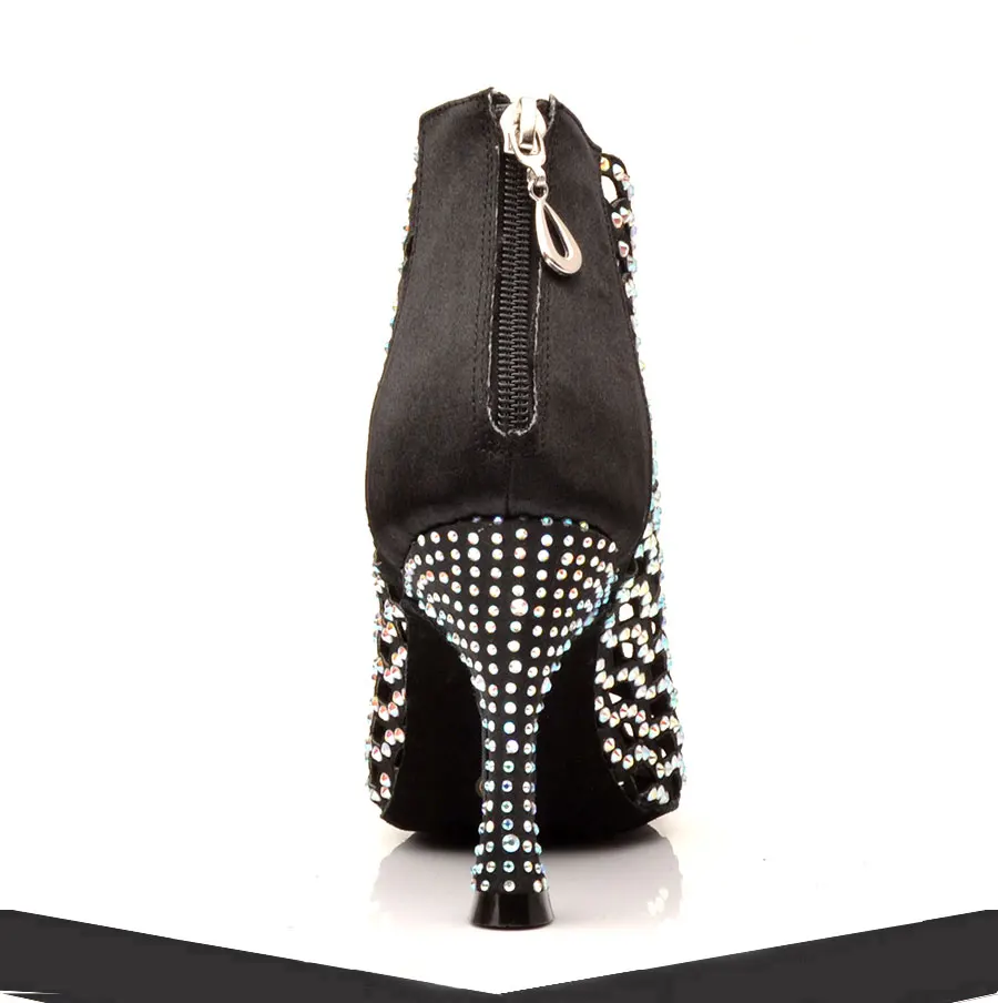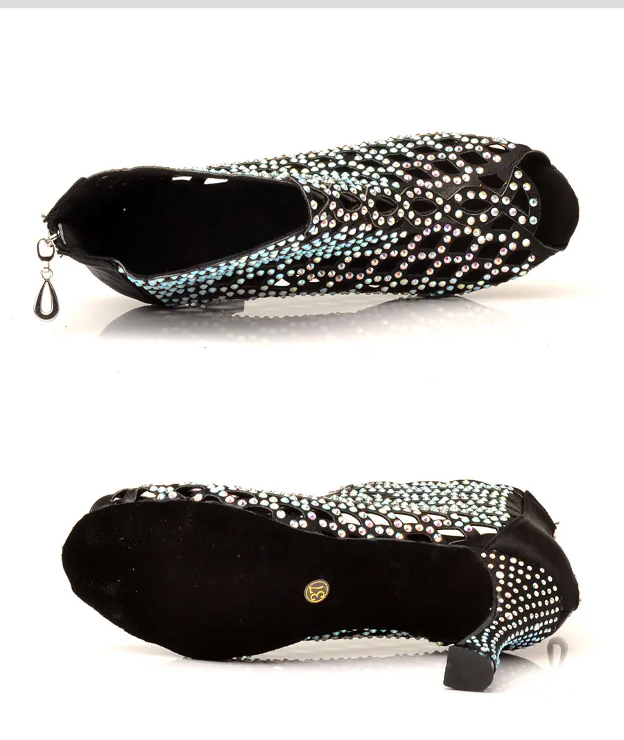 Женские туфли для латиноамериканских танцев, черные, стразы