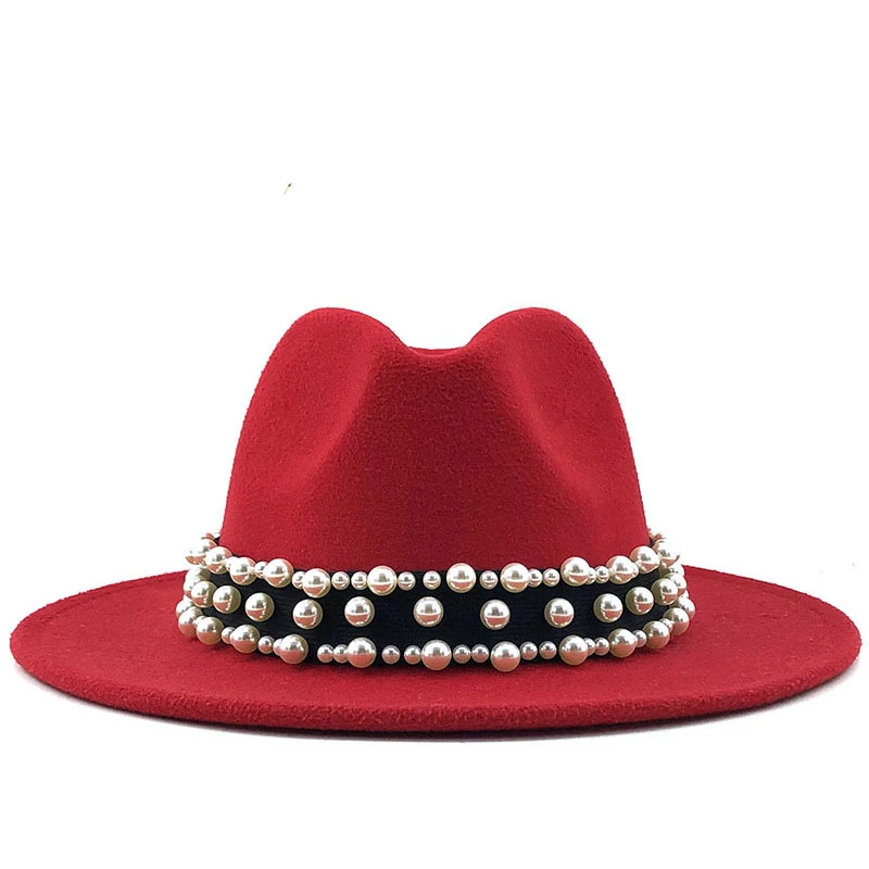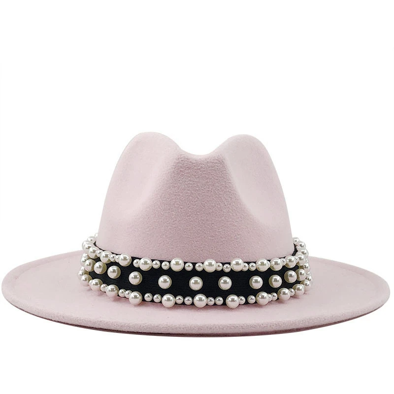 Шляпы женские с жемчужным ремнем, фетровые, с широкими полями, в ви...