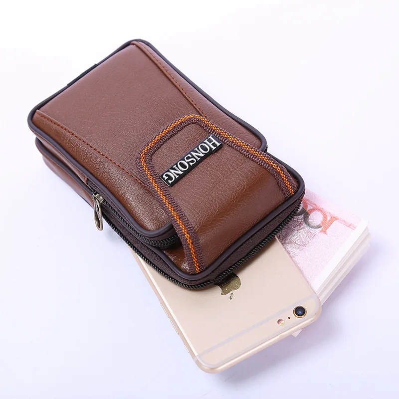 Новая мужская вертикальная сумка, двойная молния, кожаный поясной кошелек, мужской кошелек из мягкой кожи