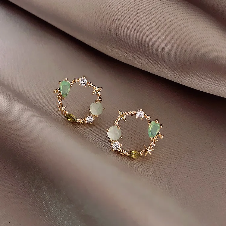 Женские серьги-гвоздики, классические круглые, розовые и зеленые, с кристаллами, цветочные украшения, подарок, 2020