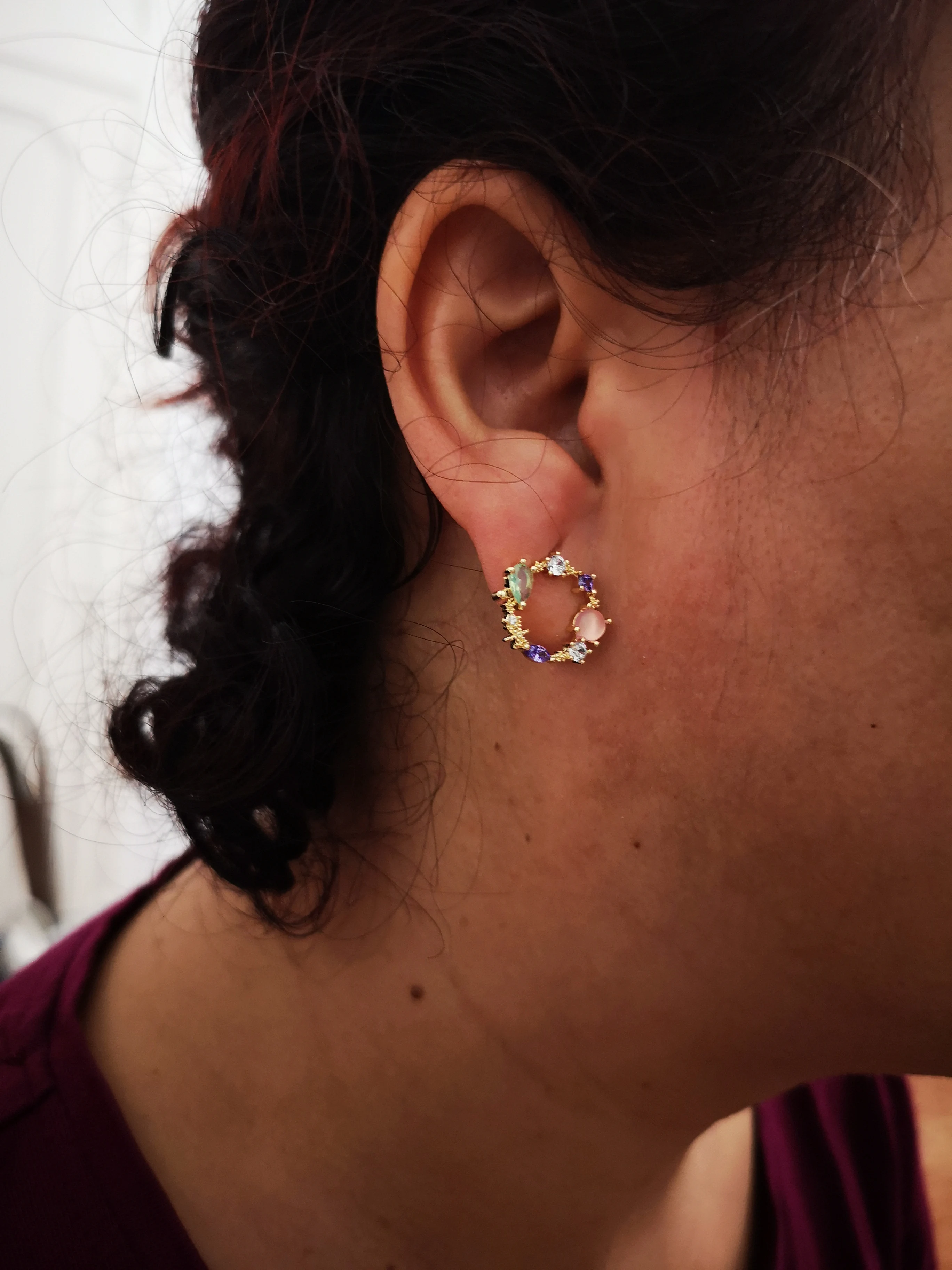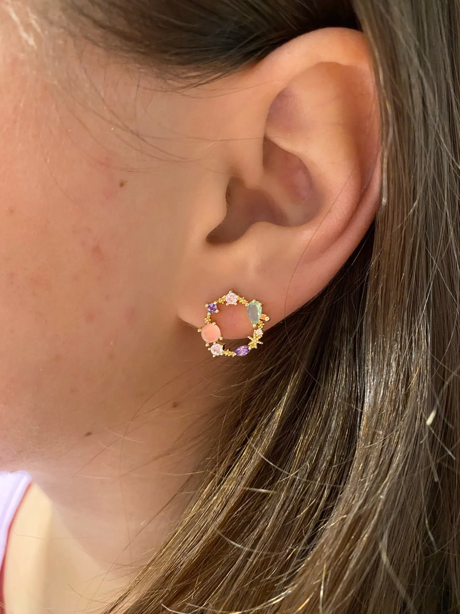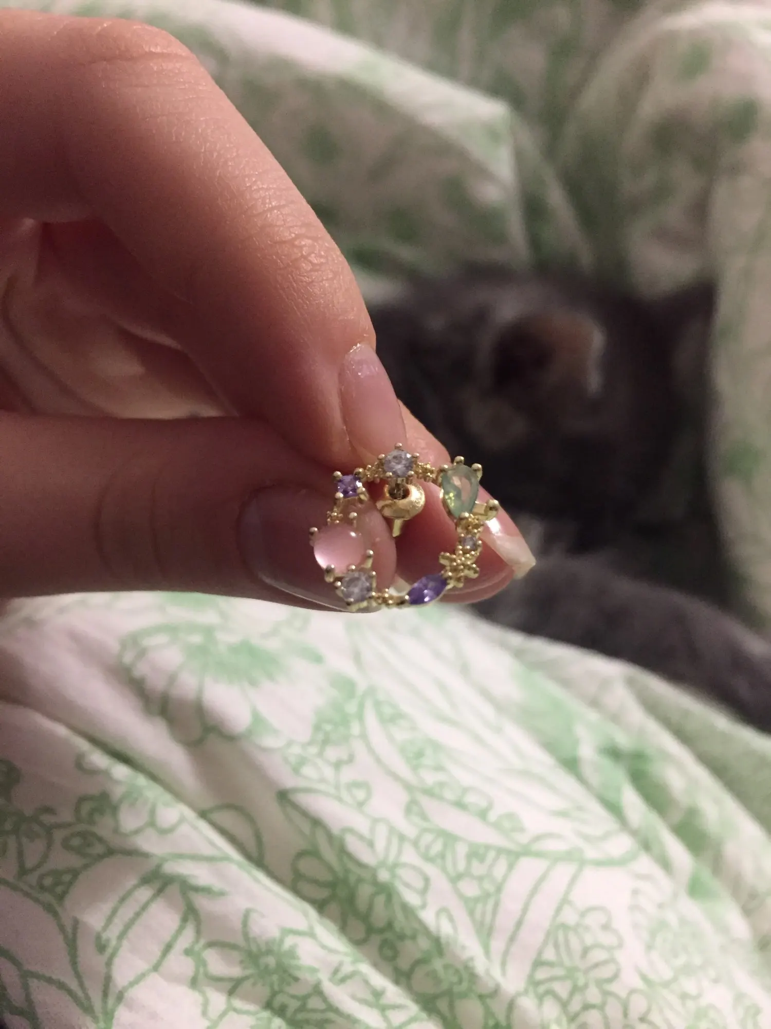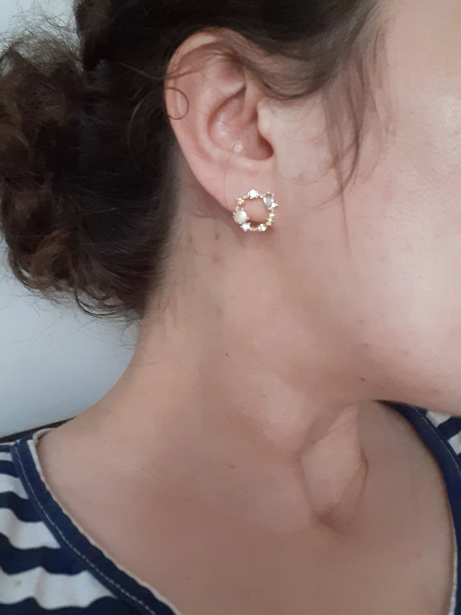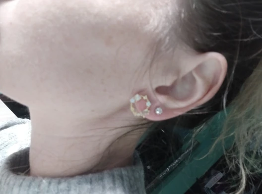 These earrings are dainty and sweet. Super easy to wear. Very pretty. I enjoy them.