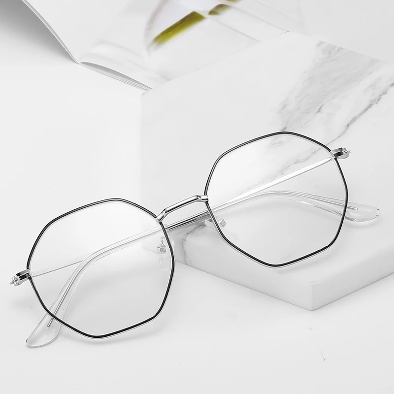 Оправа для очков Мужская с защитой от сисветильник, винтажная линза с шестигранной линзой, оптическое зеркало при близорукости, простая металлическая прозрачная оправа с защитой от синего спектра