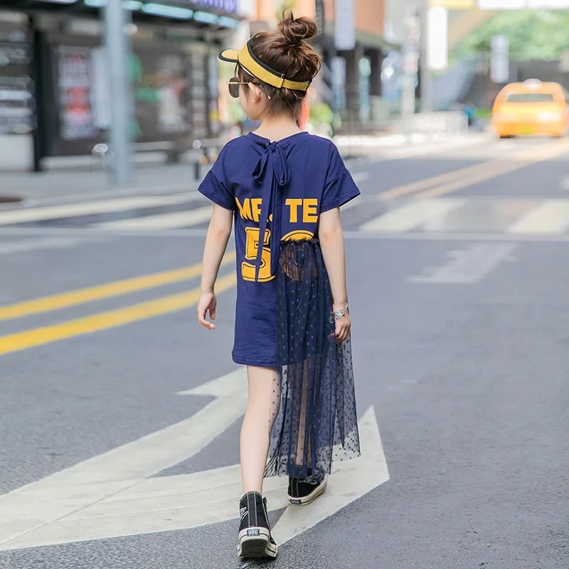 Модное летнее платье в стиле пэчворк с буквенным принтом для девочек от 8 до 10 лет новая одежда для девочек-подростков
