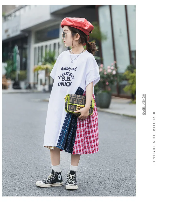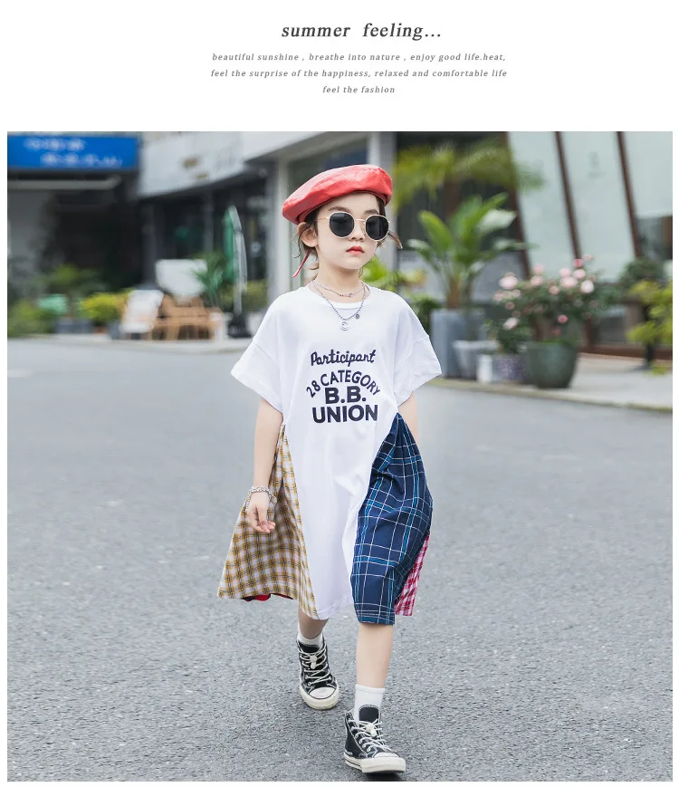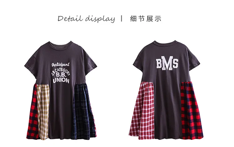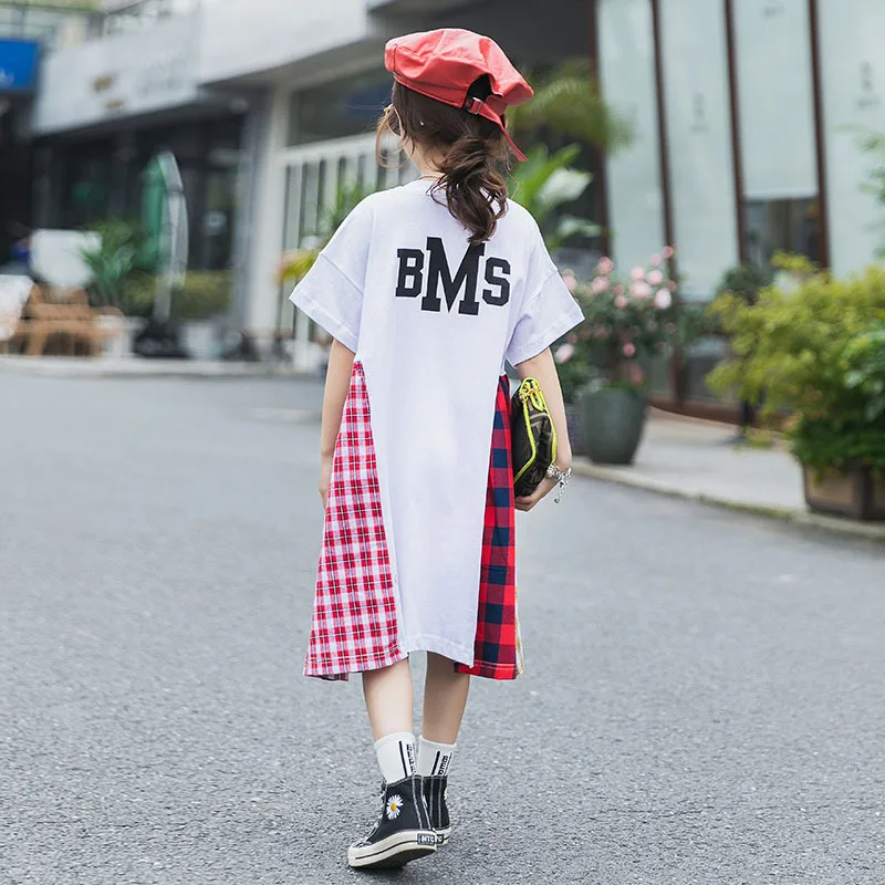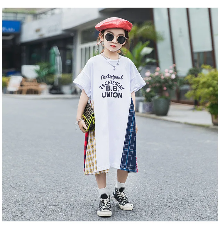 Летнее лоскутное свободное детское платье для девочек 8, 10, 12 лет, Повседневное платье с короткими рукавами для крупных девочек