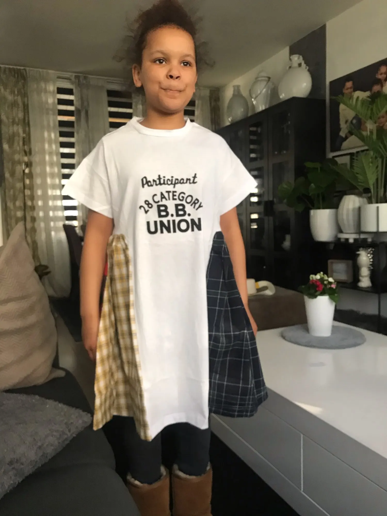 Очень широкое! В длину более -менее! 7,5 лет рост 126- худенькая! Качество хорошее- оставим на следующий год !Платье стильное!