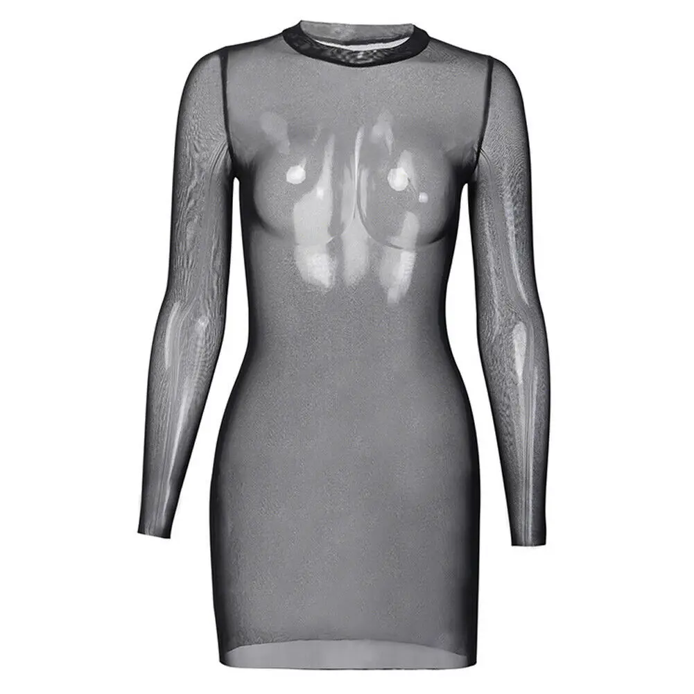Сексуальное прозрачное платье с длинным рукавом, женское сексуально...