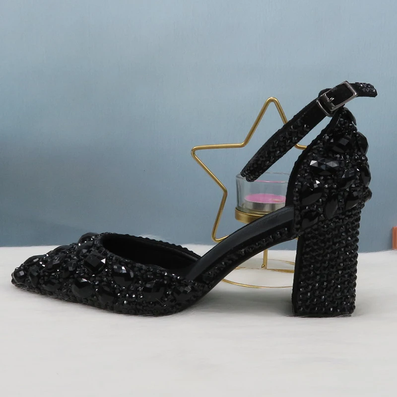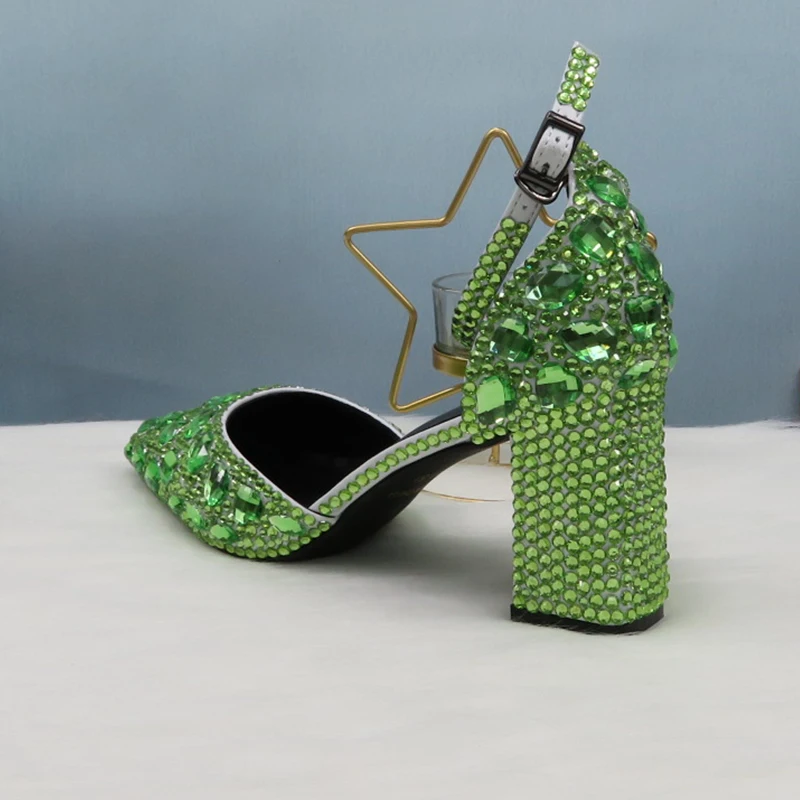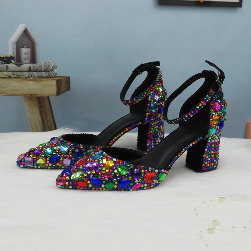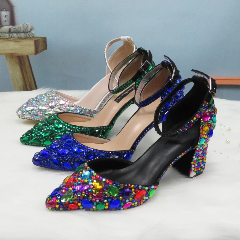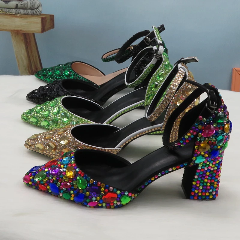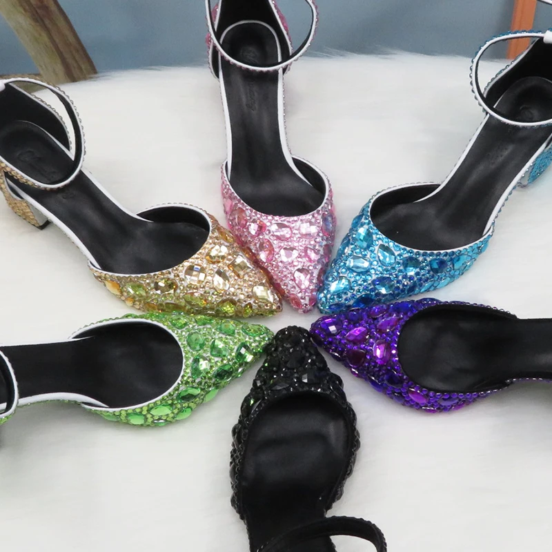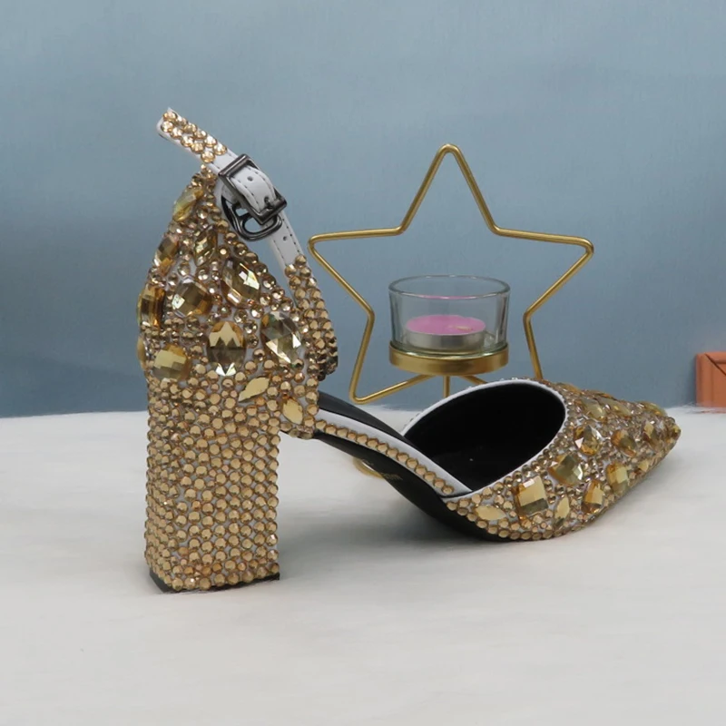 Женские босоножки с острым носком, сандалии с пряжкой на толстом каблуке, вечерние свадебные туфли, лето 2020