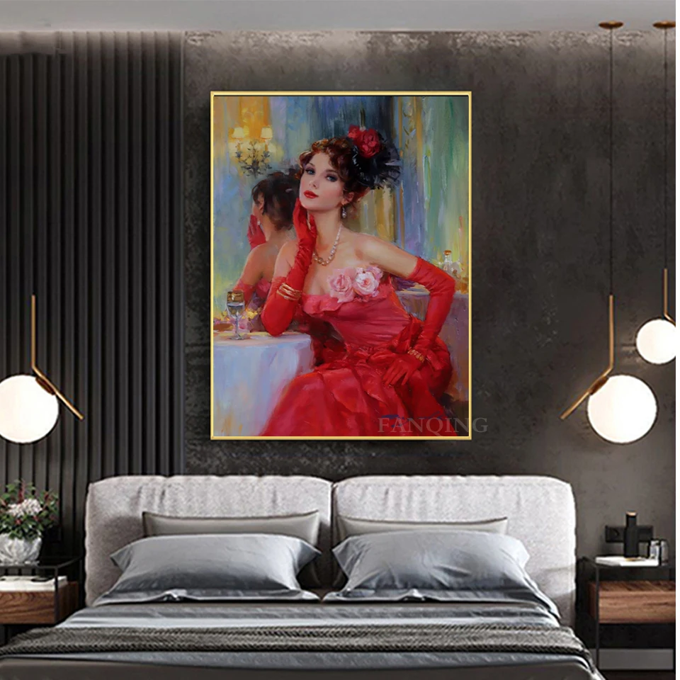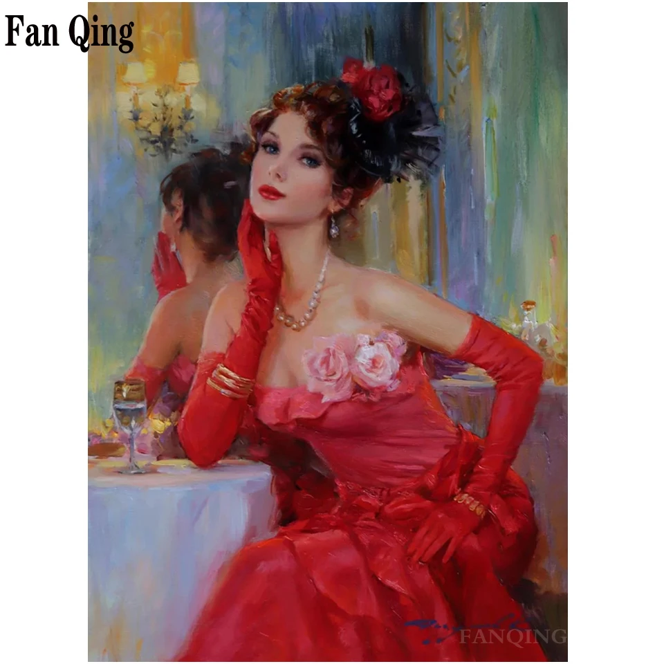 5D алмазная вышивка, домашний декор, красное платье, темперамент, красота, полный квадрат, круглая дрель, вышивка крестом, подарок, ручная работа, настенное искусство