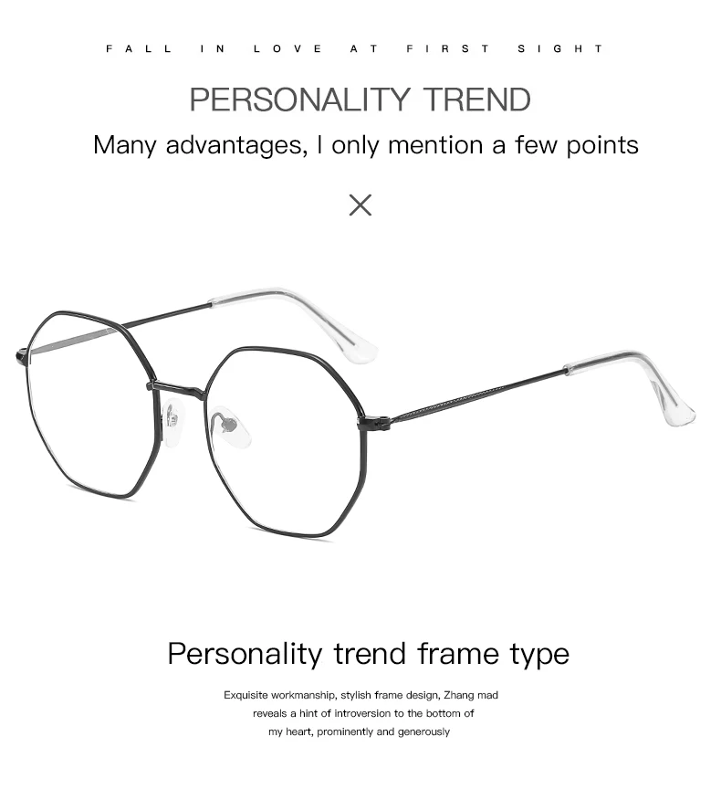 Мужской винтажный анти-синий светильник с шестигранной оправой для очков Женская линза для мужчин линзы для близорукости оптическое зеркало простые металлические анти-синие прозрачные оправы для очков