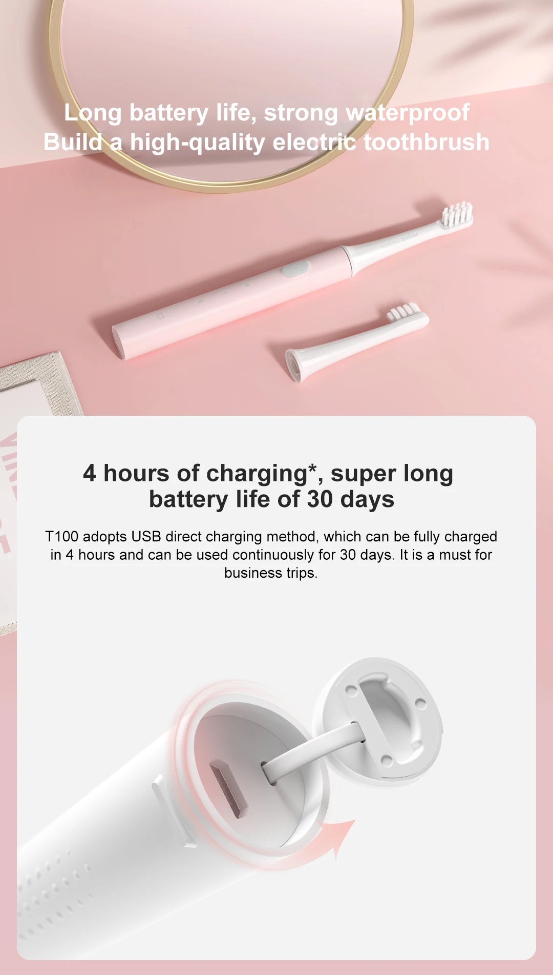Xiaomi Mijia T100 звуковая электрическая зубная щетка Mi умная зубная щетка цветная USB перезаряжаемая IPX7 водонепроницаемая для зубной щетки