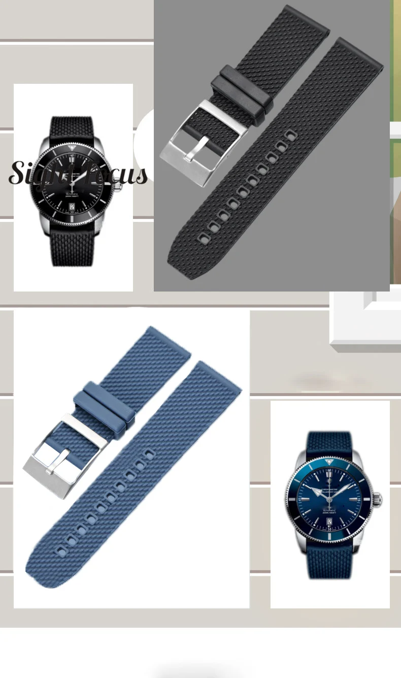 Ремешок резиновый для наручных часов 22 мм, браслет для дайвинга Ulysse Nardin AB201012 Navitimer Avenger
