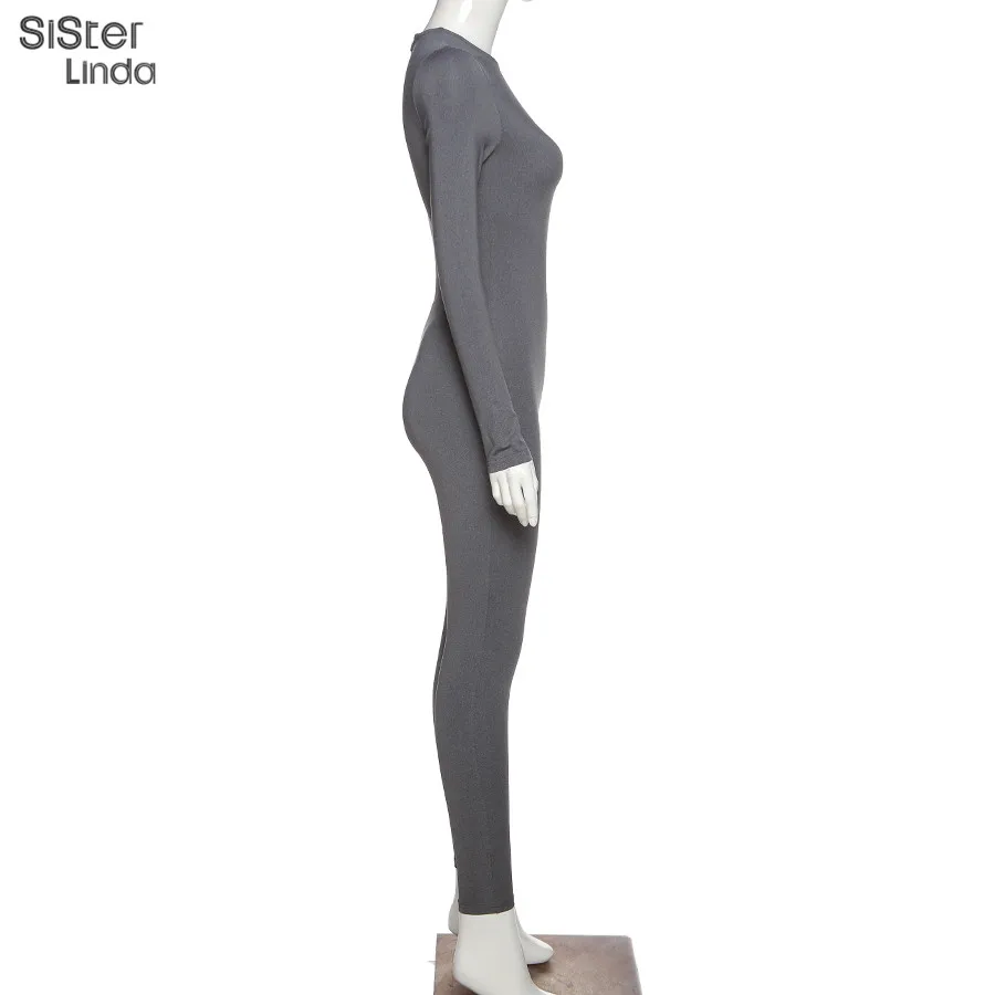 Женский однотонный комбинезон Sisterlinda, облегающий Длинный комбинезон с высоким воротом и длинным рукавом для фитнеса, лето 2020
