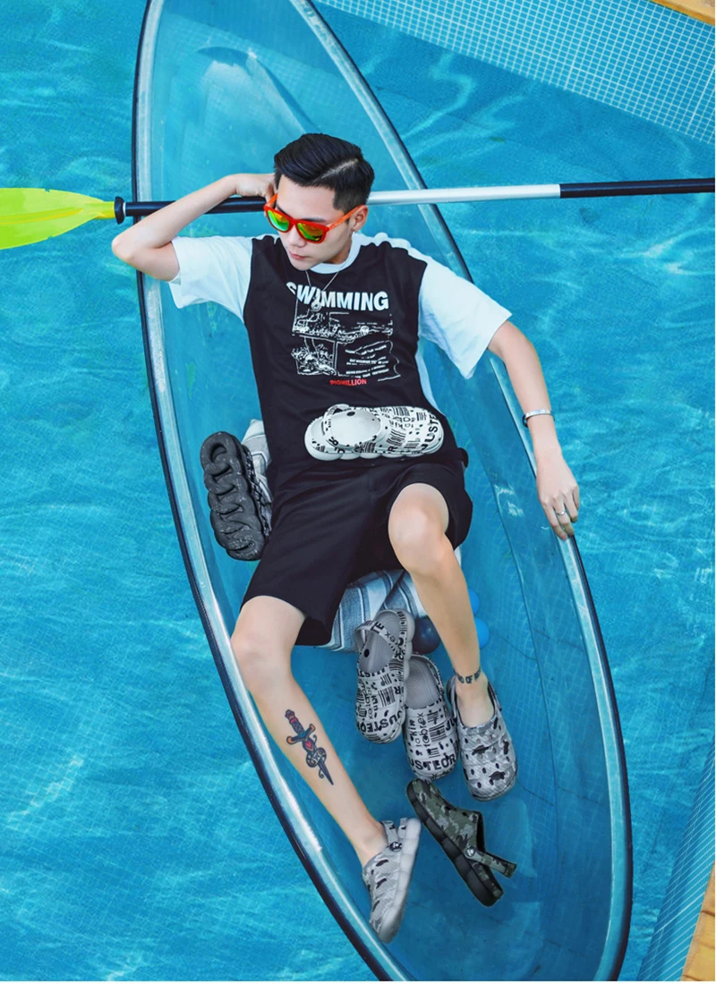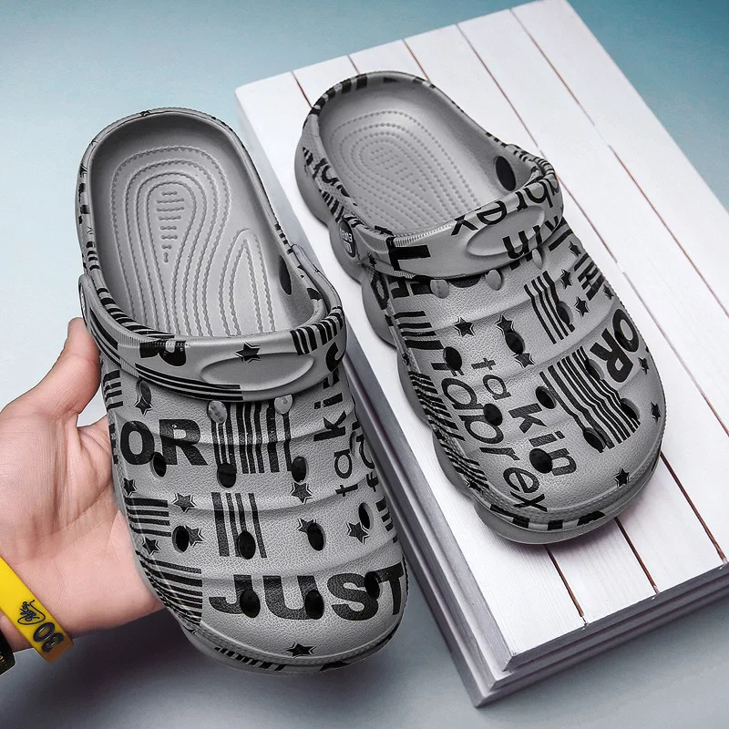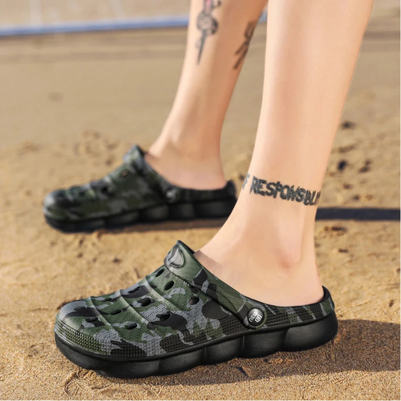 Мужские пляжные сабо 2021 летние камуфляжные сабо для женщин сандалии с буквенным принтом удобная повседневная обувь для душа унисекс