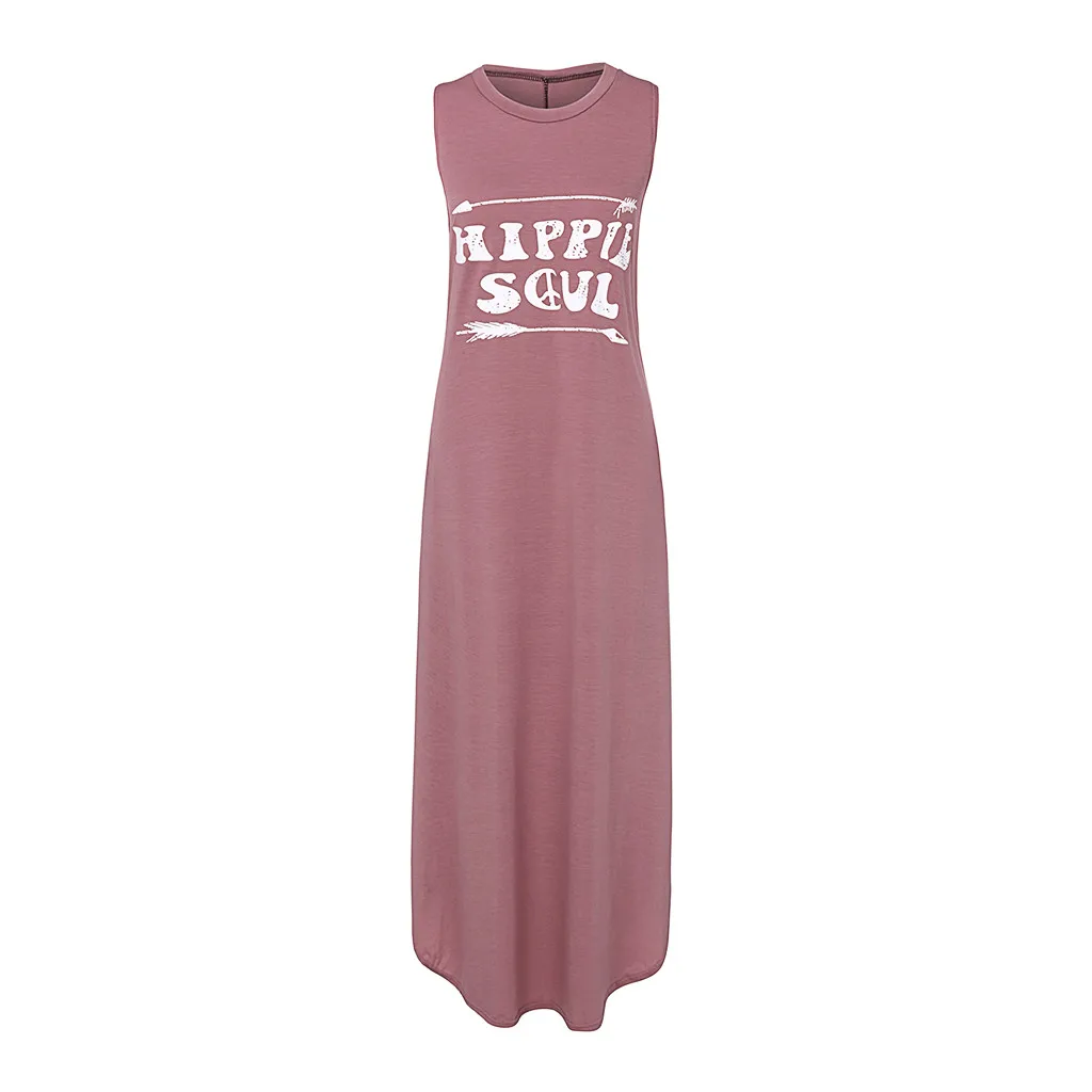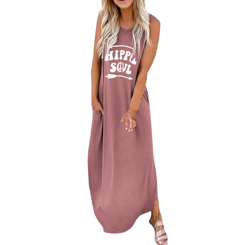 Женский богемный Сарафан # Z20, длинное Повседневное платье макси без рукавов, с буквенным принтом, для вечеринок, лето 2020