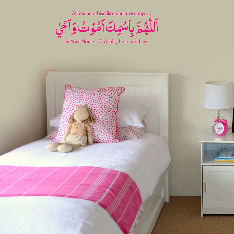 Исламские настенные наклейки, украшение для детской комнаты, украшение для спальни, украшение для стены, арабское каллиграфическое искусство Dua Allah Bismika Amutu