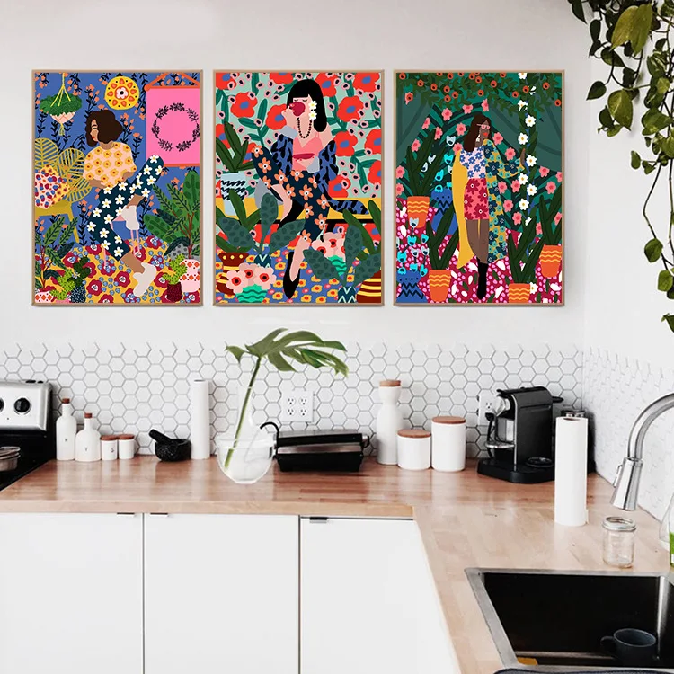 Модные цветочные постеры для девочек, Раскрашивание на холсте, абст...