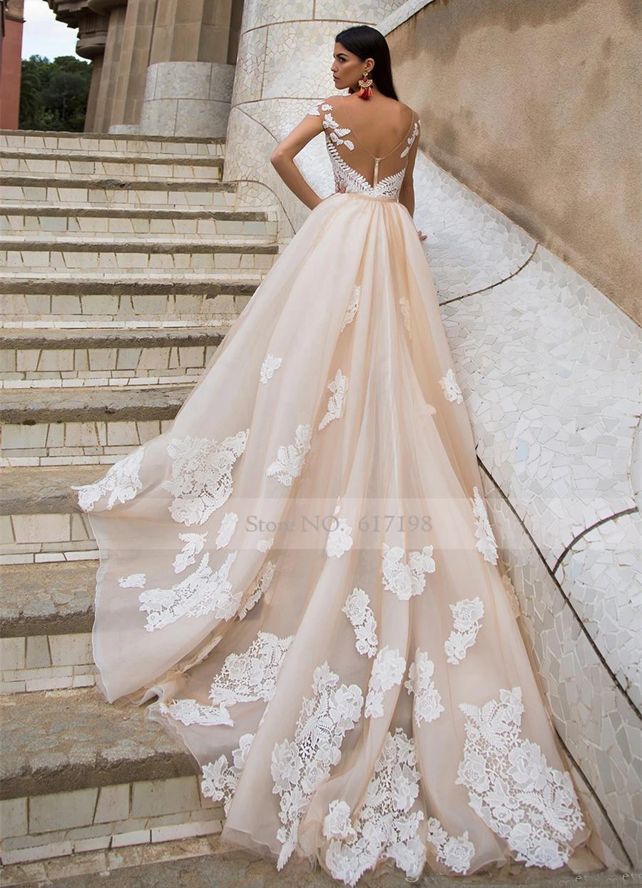 Фатин цвета шампанского с открытыми плечами и белое кружевное свадебное платье-футляр со съемной длинной юбкой свадебное платье vestido casame