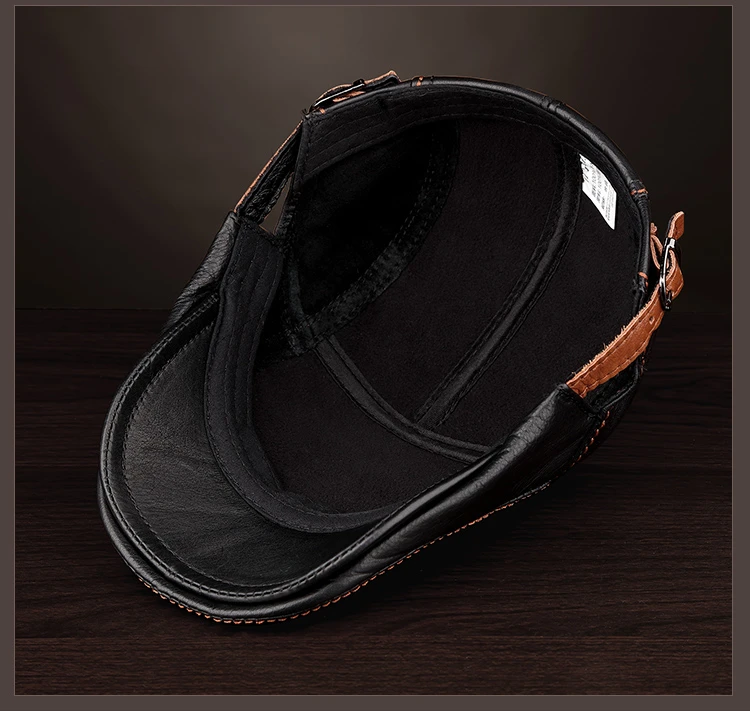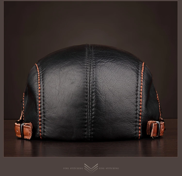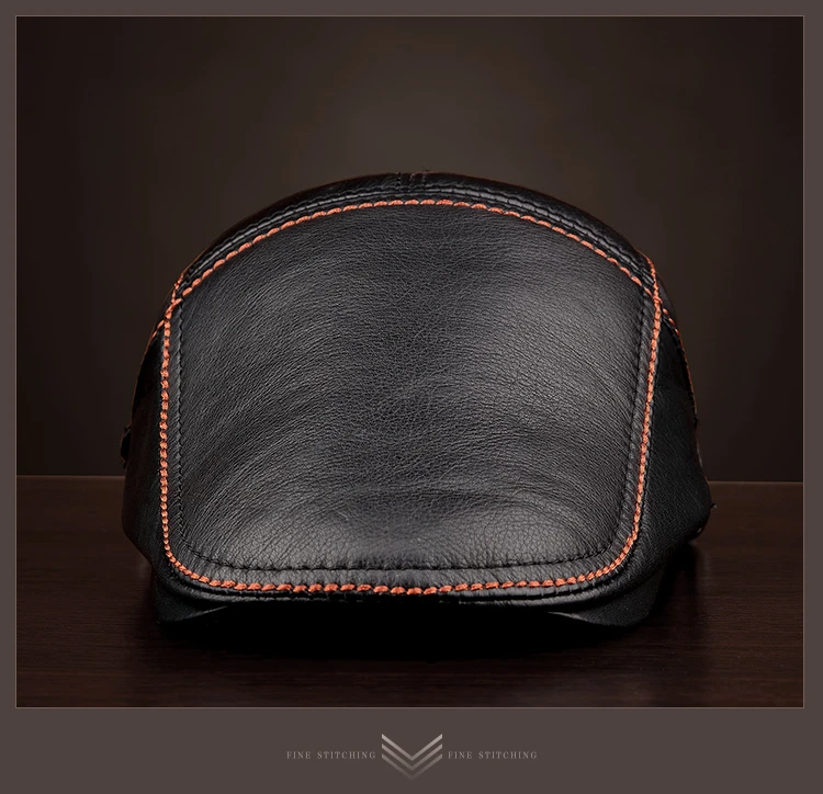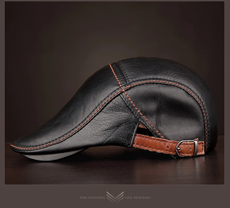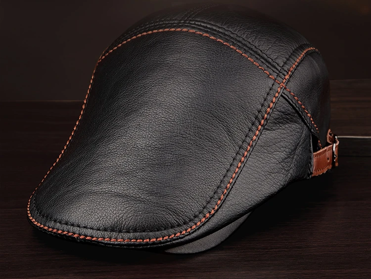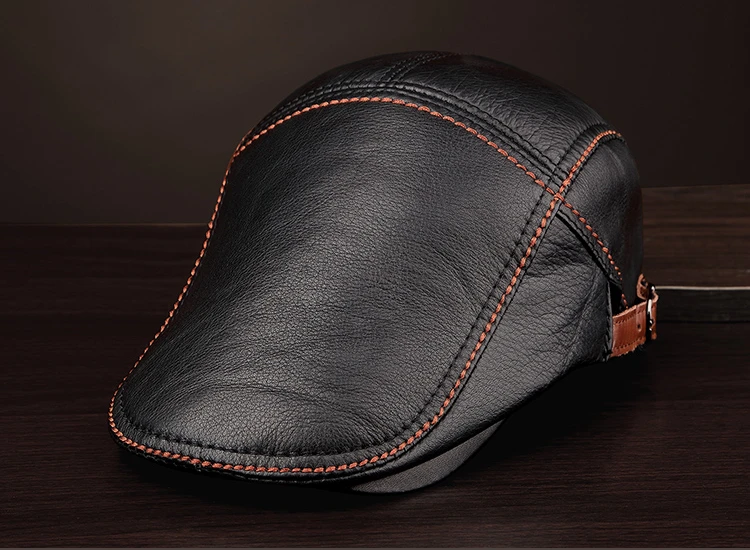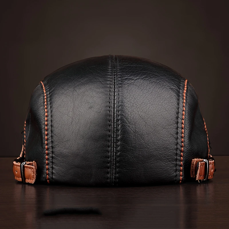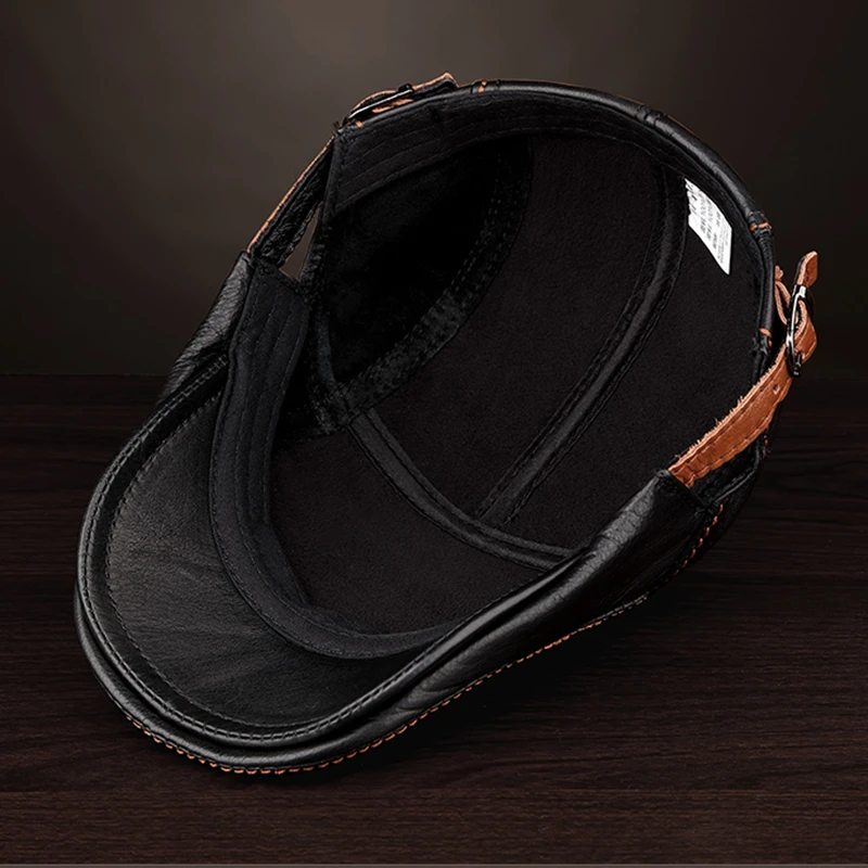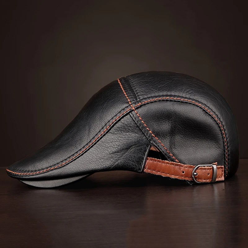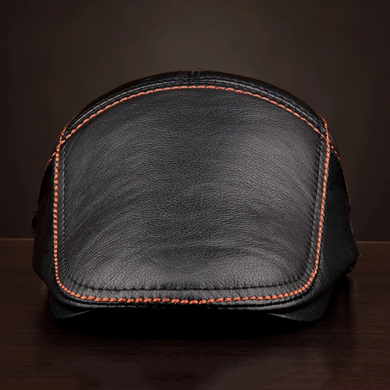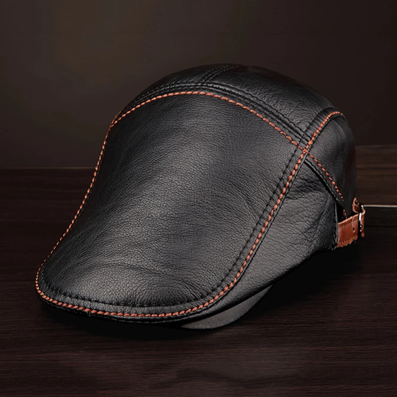 Autumn Winter Flat Caps For Men Women Black Duckbill Hats Male Female Real Cowhide Leather Classic High-End Driving Caps