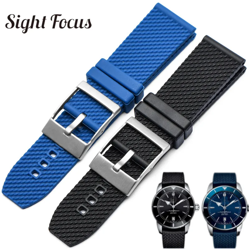 Черный каучуковый ремешок для часов, 24 мм, для Breitling superокеанского достояния AB201012, каучуковые ремешки для часов Navitimer Avenger, погружной браслет Uhr