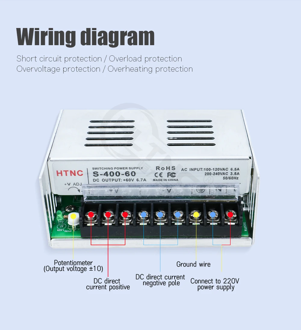 Быстрая доставка 400 Вт 500 Вт постоянного тока 60 в 48 в 36 В переменного тока 110 В-220 В однофазный импульсный источник питания для ЧПУ