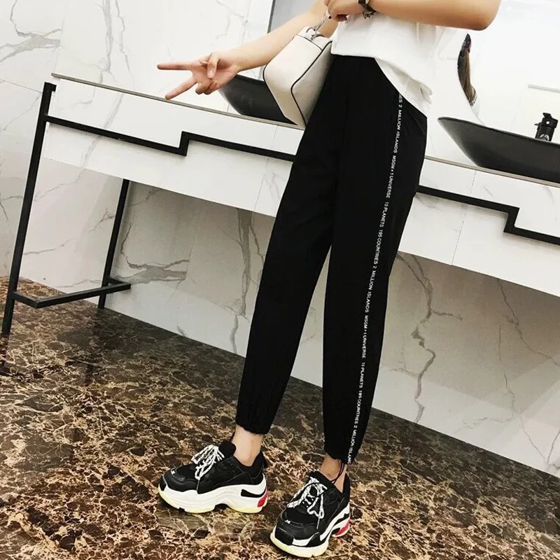 Шаровары женские, черные, белые, с эластичной талией, мешковатые, тактические, размера плюс