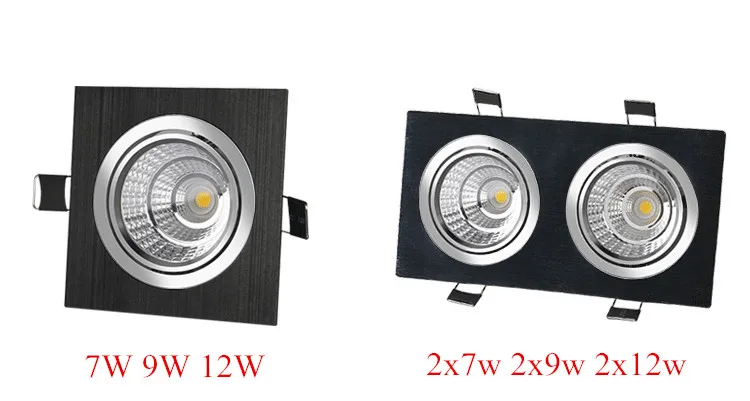 Черный, серебристый Квадратный светодиодный светильник COB с регулируемой яркостью 7 Вт 9 Вт 12 Вт 14 Вт 28 Вт 24 Вт, светодиодный встраиваемый потолочный светильник Светодиодный точечный светильник COB