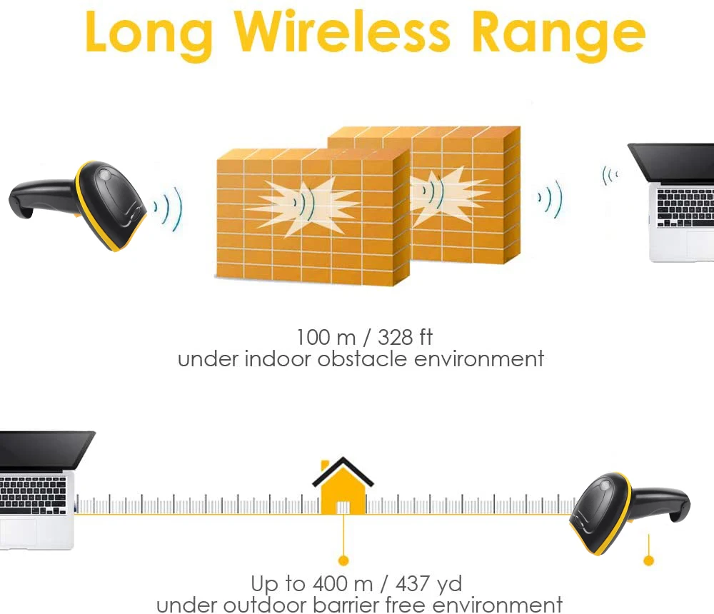 Сканер дошёл достаточно быстро, всё быстро установилось, работает, читает достаточно хорошо. По дальности действия, отошёл от компьютера на 10 метров через кирпичную стену сканер запищал, как-будто пропала связь, заявленных 100м. внутри помещения явно нет.