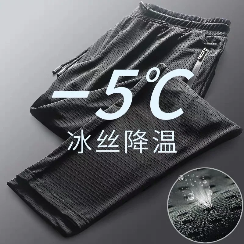 Брюки мужские тонкие воздухопроницаемые, дышащие большие повседневные штаны, эластичные узкие быстросохнущие брюки из вискозного волокна, на лето