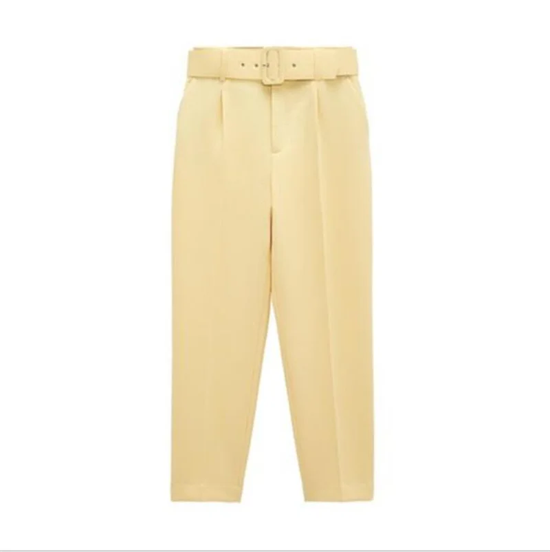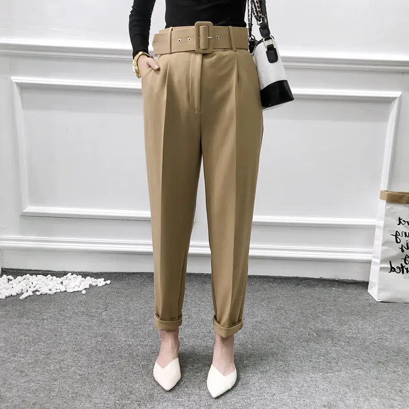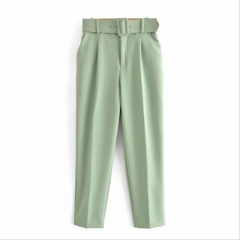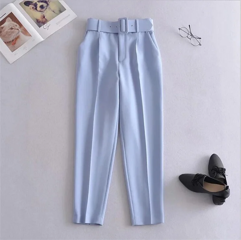 GCAROL Женский костюм с высокой талией, брюки с поясом, длиной до щиколотки, элегантные офисные классические брюки для разных случаев, 14 цветов