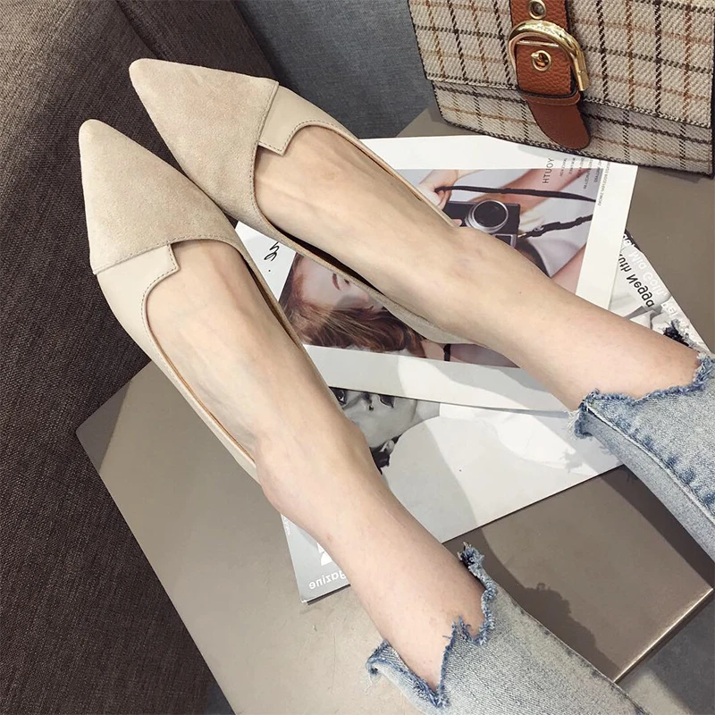 Женские однотонные туфли на плоской подошве из флока с острым носком абрикосового цвета, большие размеры 31, 32, 33, 34, большой размер 43, 44, 45, 46