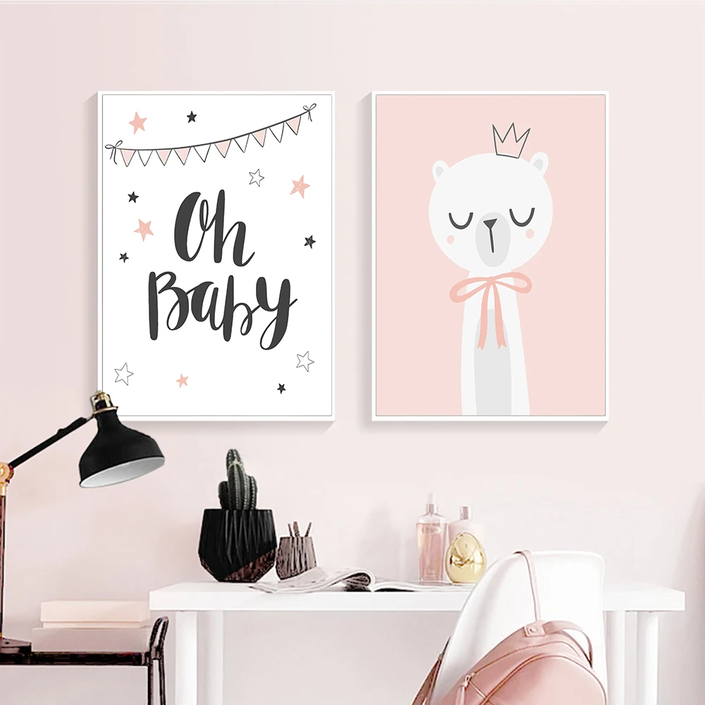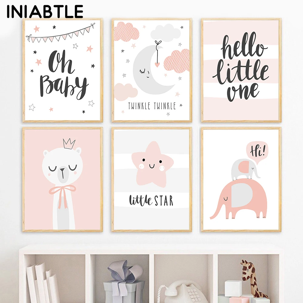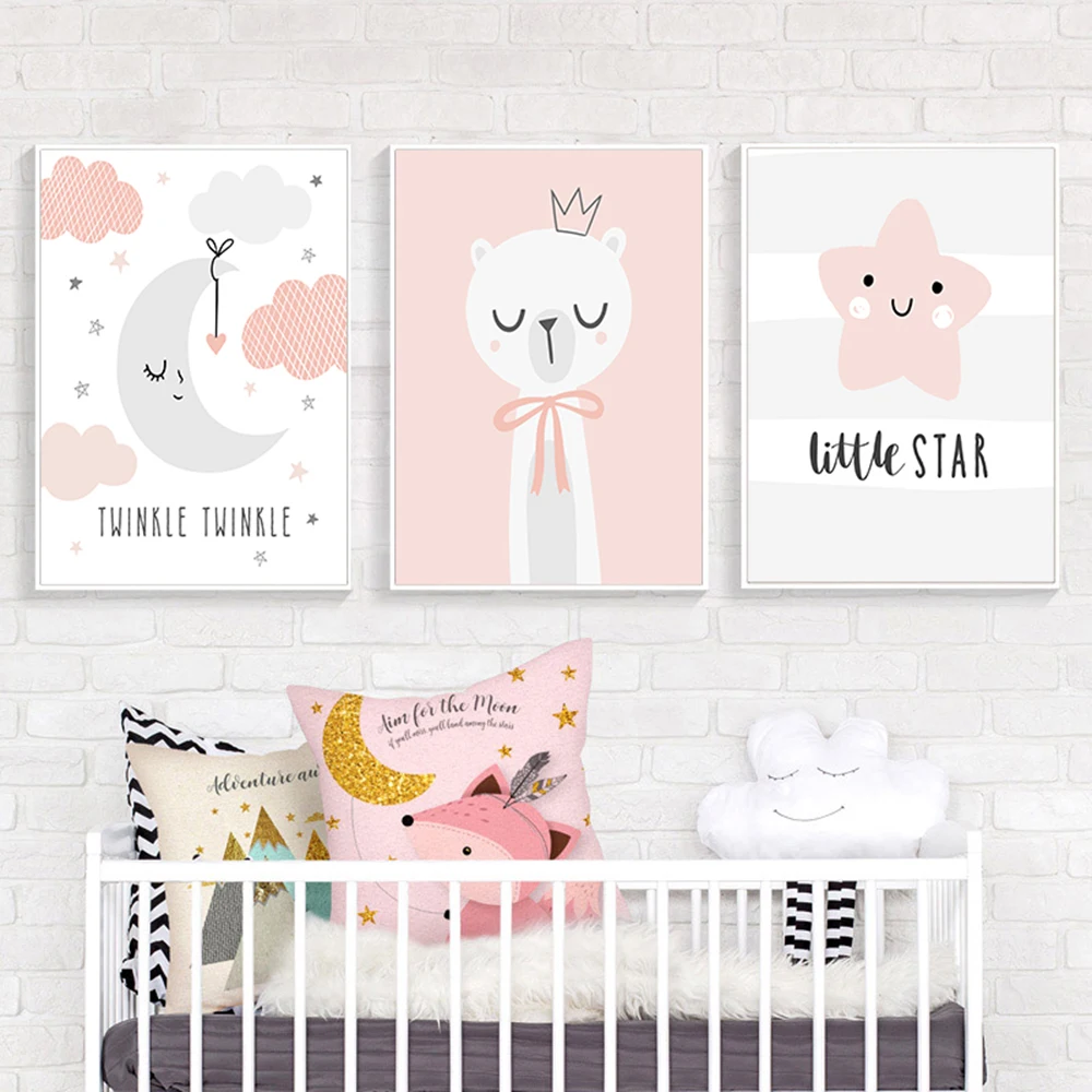 Луна, облако, звезда, медведь, Детская стена, искусство, милая картина холст с печатью постера, украшение для картины, скандинавский декор комнаты для маленьких девочек