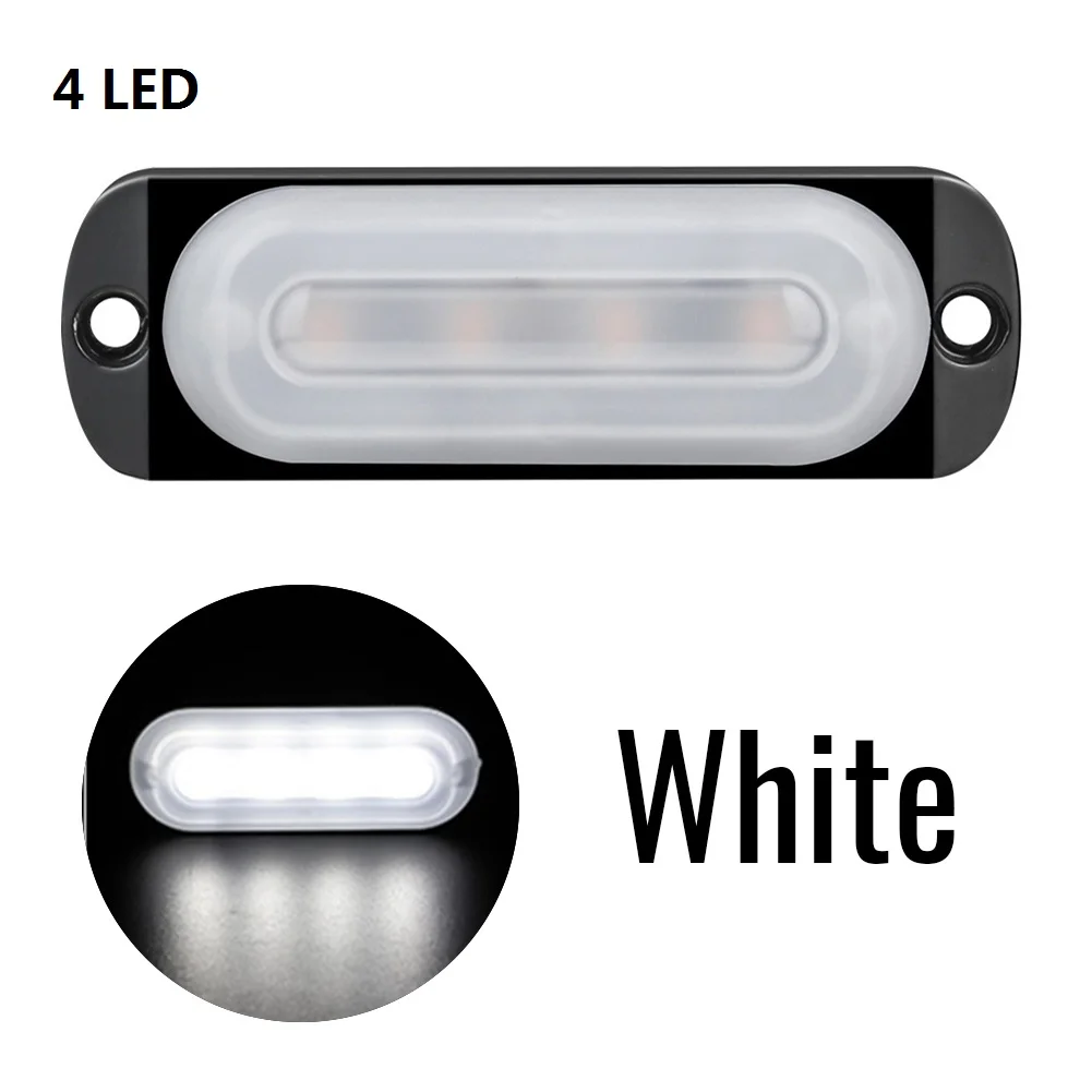 Мощность: 12 Вт (3 Вт/светодиодный) Напряжение: 12 В постоянного тока • Сила тока: 333mA Количество СВЕТОДИОДНЫЙ: 4/6x светодиодный s/светильник Материал корпуса: АБС-пластик Оболочки Цвета: белый Светодиодный светильник цвет: белый, желтый, красный, белый и желтый, красный и синий Подключение проводов: черный для отрицательных, красный для положительных Размеры: 8,6 см/3,38 дюйма x 2,8 см/1,10 дюймов.Посылка включает в себя: