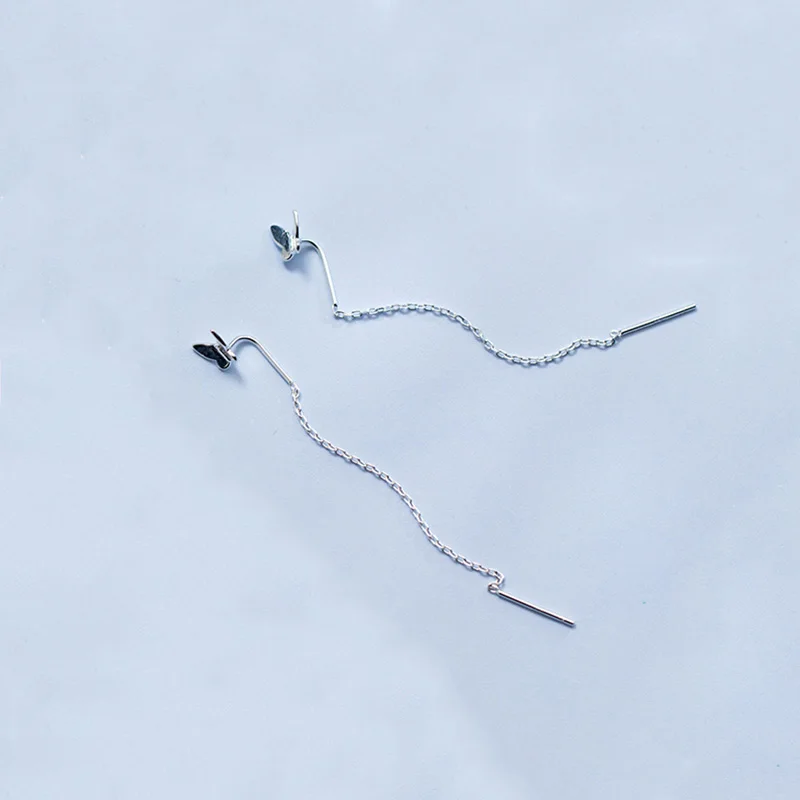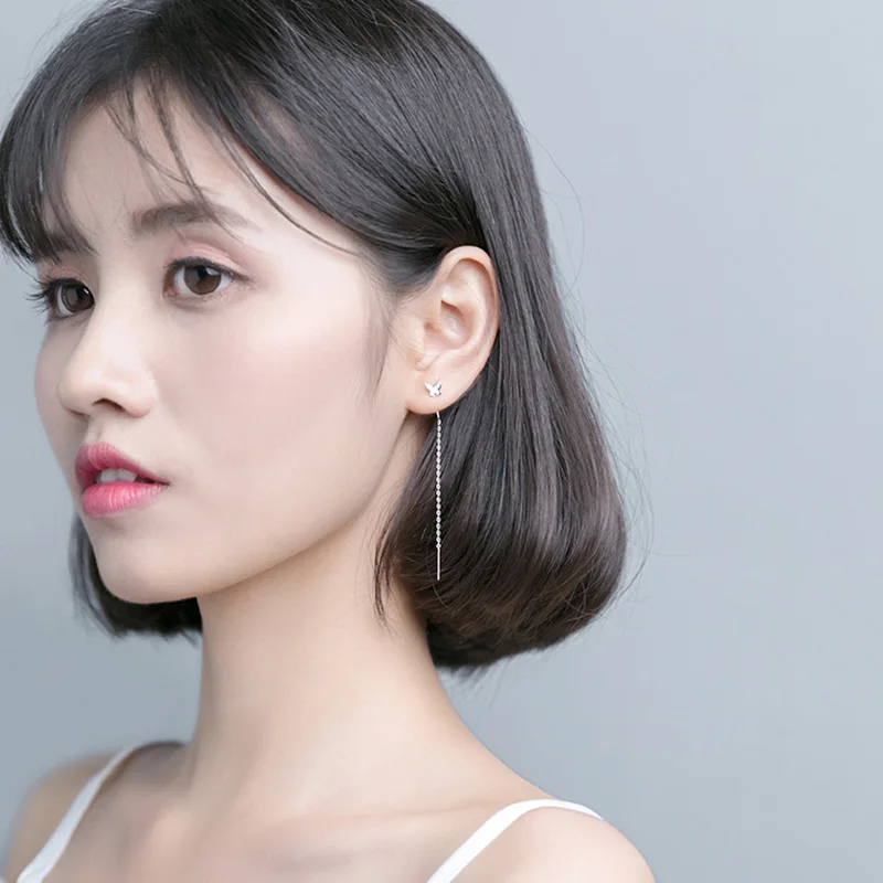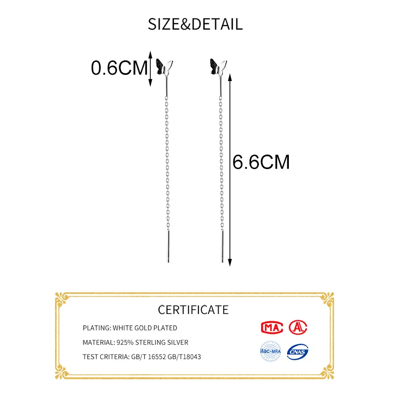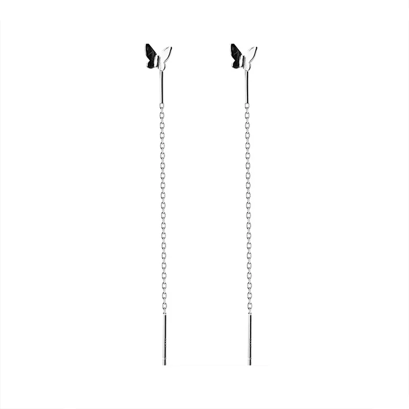 100% Настоящее серебро 925 пробы, длинные серьги с бабочками и кист...