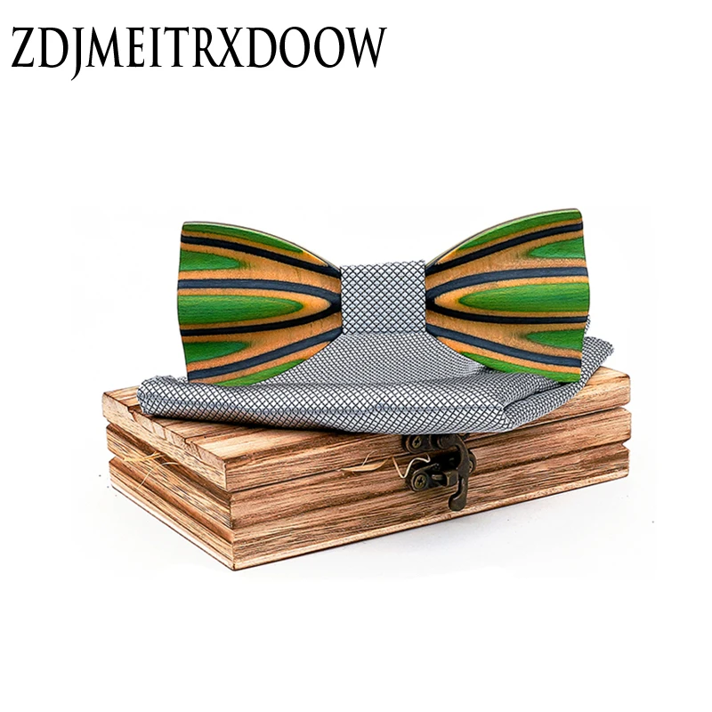 2020 Пейсли 3D Зеленый деревянный галстук-бабочка шелковый платок запонки брошь набор для мужчин Свадебный новый аксессуар галстуки и коробка