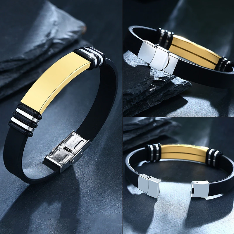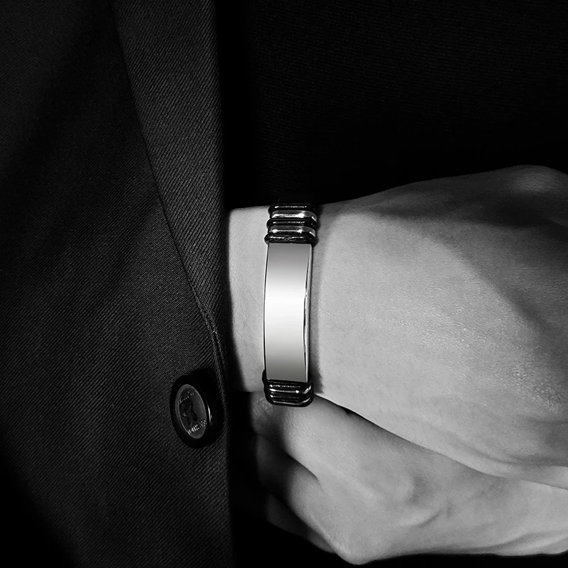 Мужской черный силиконовый браслет с биркой из нержавеющей стали
