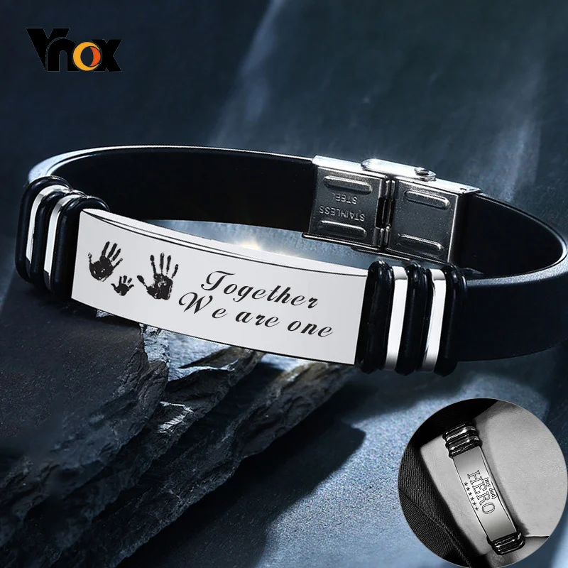 Vnox 12 мм индивидуальные ID браслеты из нержавеющей стали для мужчин повседневный мягкий резиновый силиконовый базовый браслет персонализированный уникальный подарок