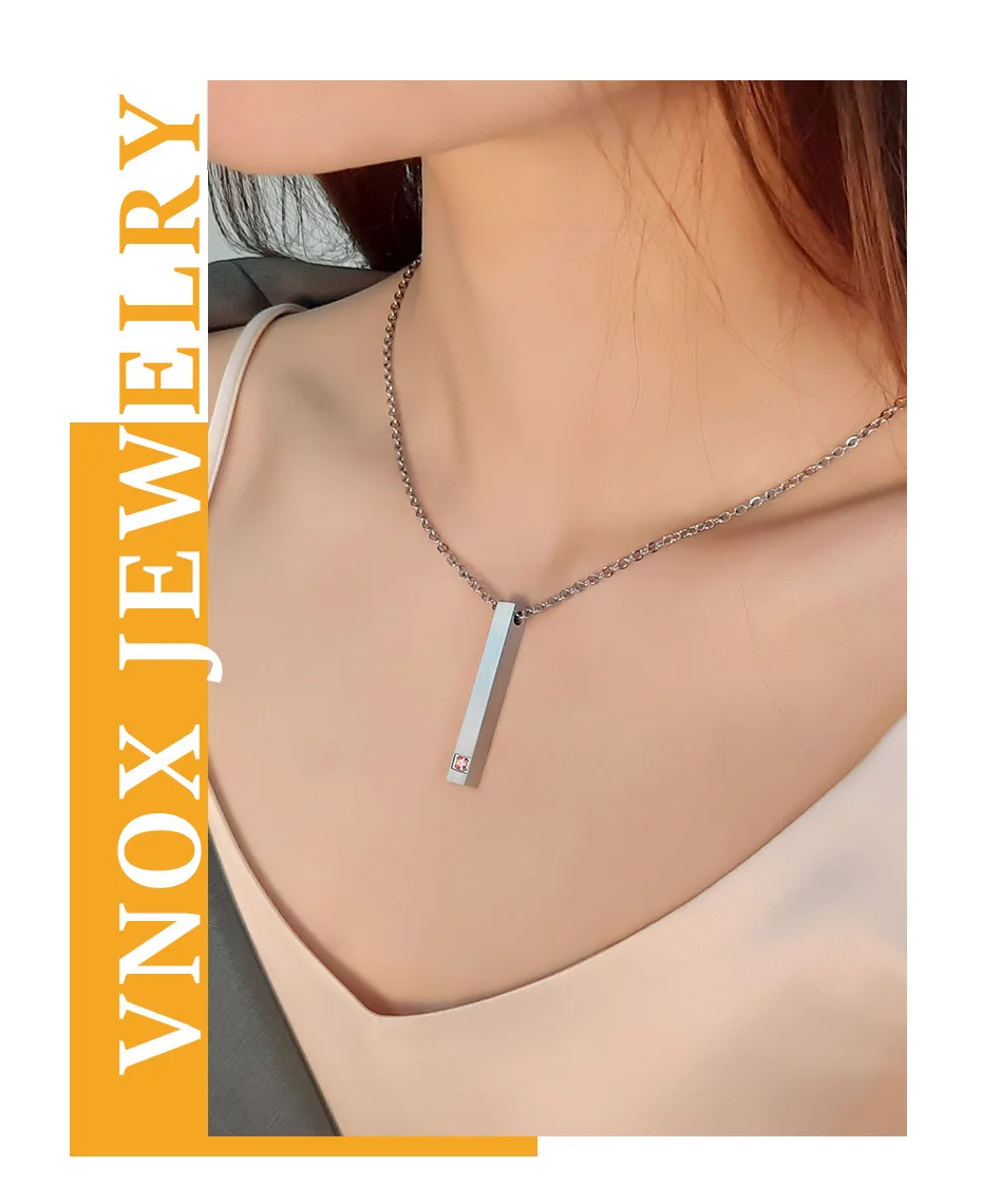 Ожерелье Vnox на заказ для пар, модная Вертикальная подвеска-брусок для мужчин и женщин, Мужская гравировка имени, Подарок на годовщину