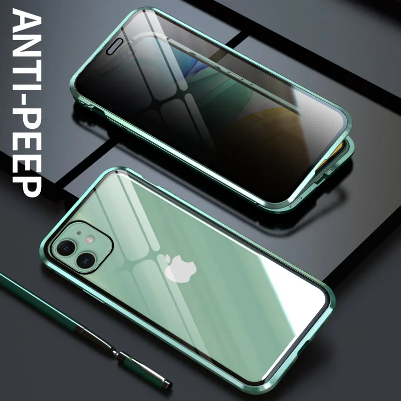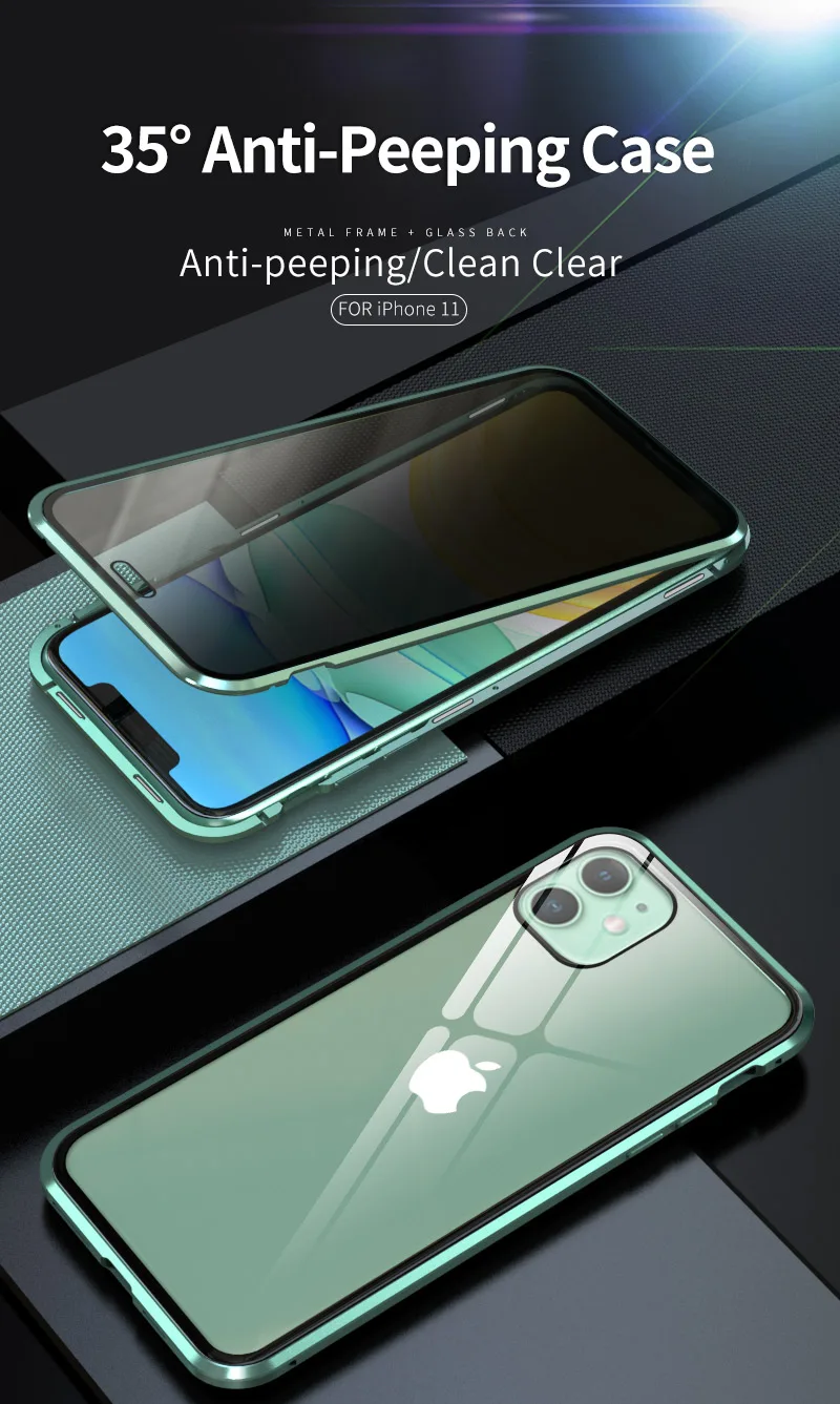 Магнитный чехол для iPhone 11, XR, XS, двусторонний, из закаленного стекла, антишпионский, 360
