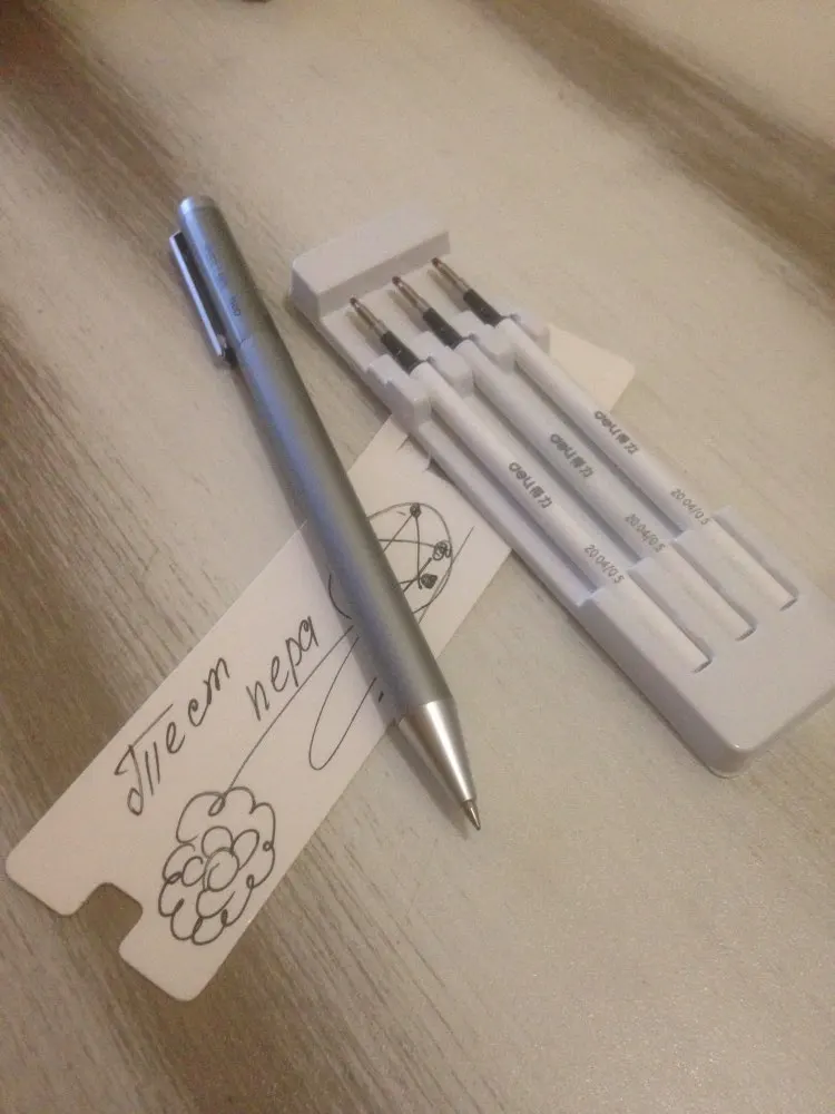 Долго шла, но пришла! Качество хорошее, пишет замечательно. По крайней мере стержень который стоит в ручке. Покупал белую xaomi, эта ручка гораздо лучше!