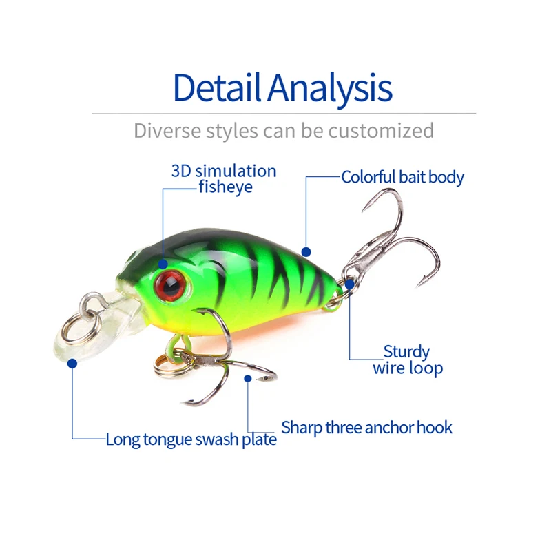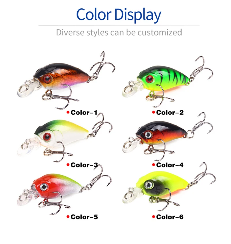 Тип: Искусственная приманка Название продукта: Рыболовная Приманка Minnow Вес: 3,8 г Длина: 4,5 см Глубина погружения: Topwater Тип крючков: Тройной крюк из высокоуглеродистой стали Цвет: 6 цветов с 2 рыболовными крючками Материал: АБС-пластик Упаковка: 1 шт. в полиэтиленовом пакете