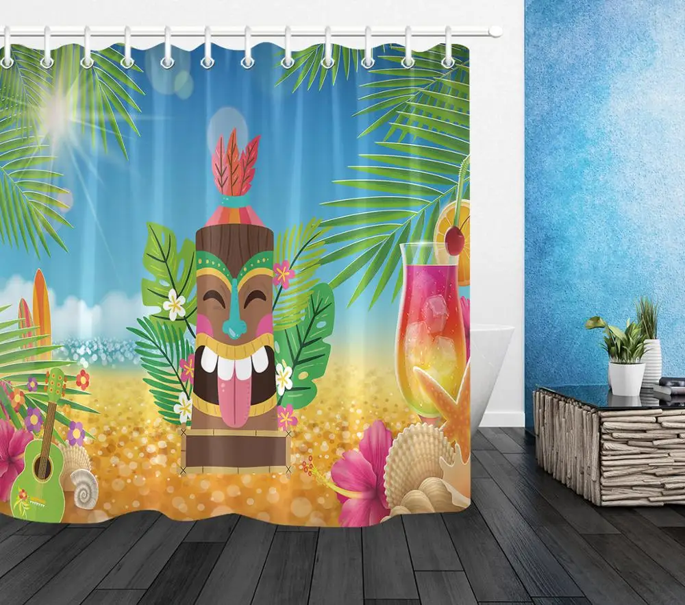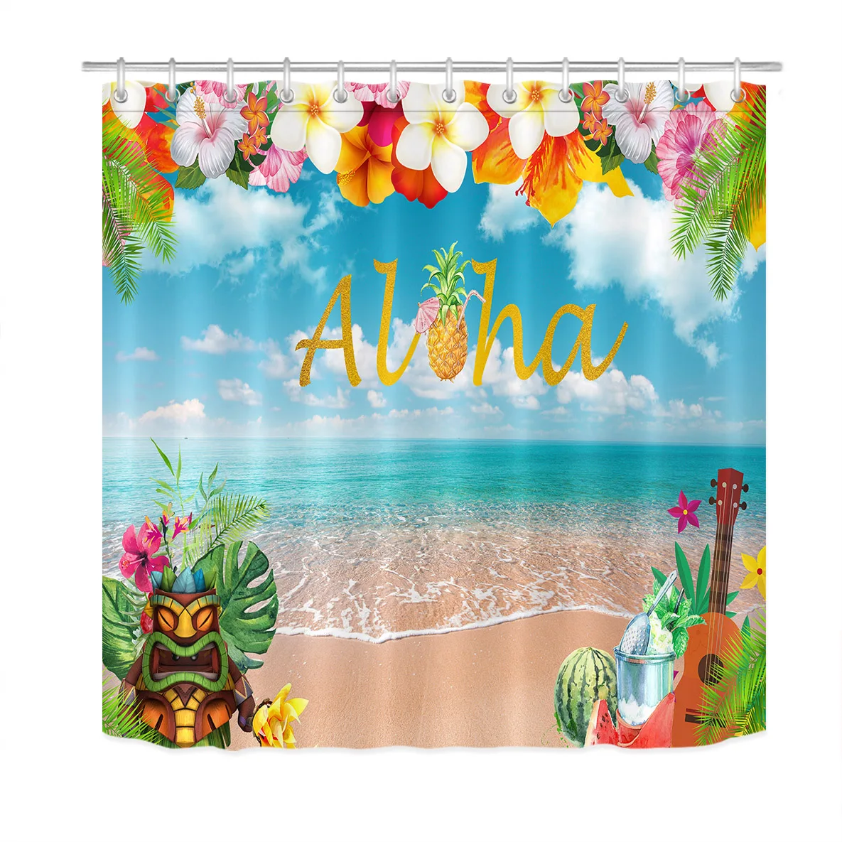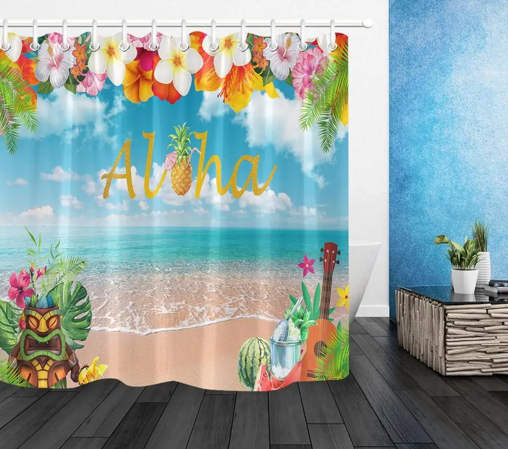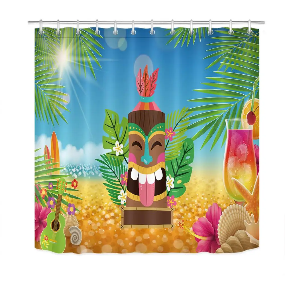 Гавайская тропическая занавеска для душа с листьями и цветами для ванной, Полиэстеровая ткань для ванной, водонепроницаемая летняя занавеска в этническом стиле