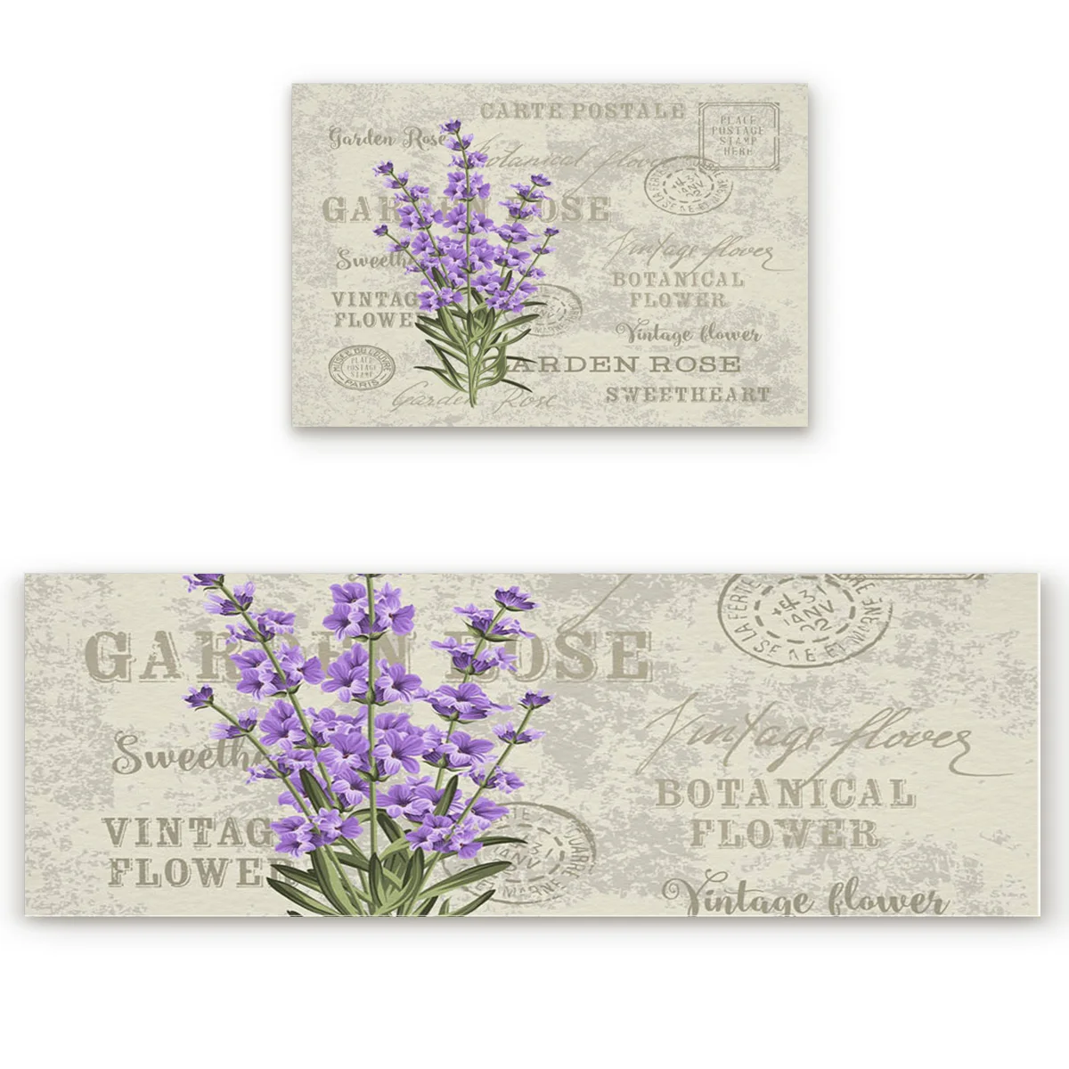 2 шт.компл., лавандовые фиолетовые цветы, листья, ретро-коврики, кухонные коврики для гостиной, двери, коврик для входной двери, декоративный напольный ковер