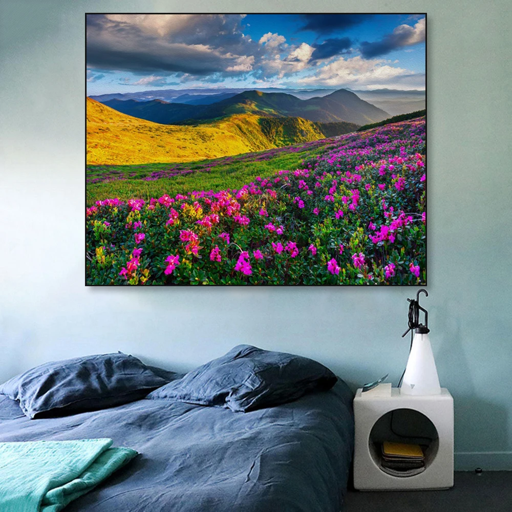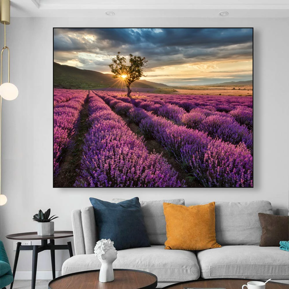 Постер с цветами лаванды, пейзаж, холст, живопись, скандинавский Декор для дома, настенные художественные принты, украшение для гостиной, пейзаж, картина