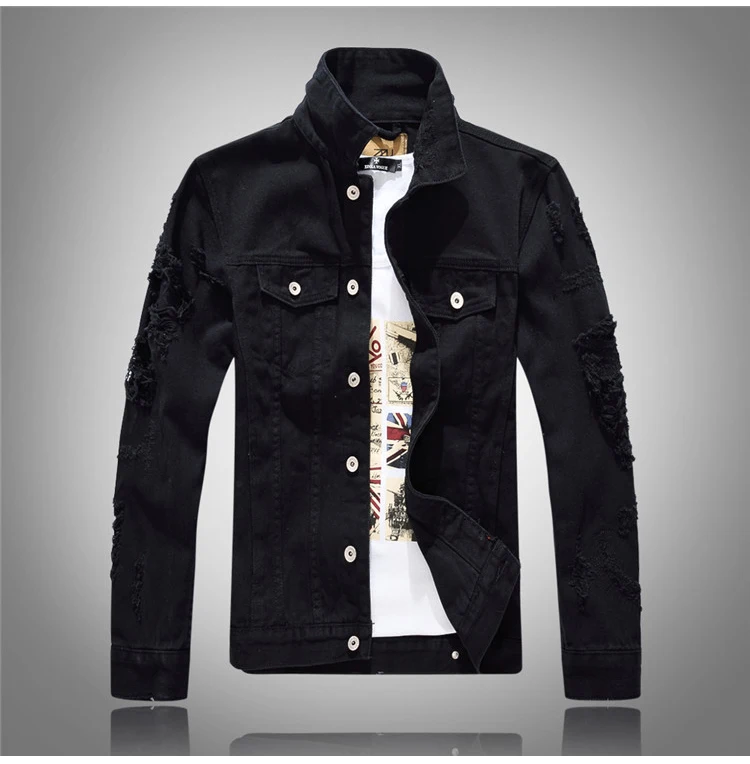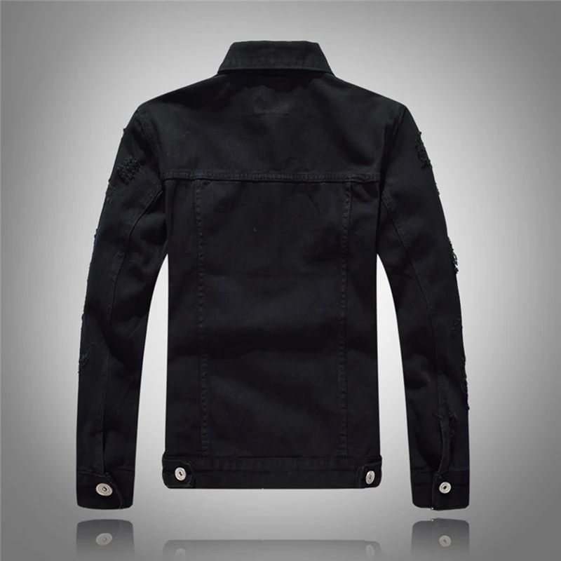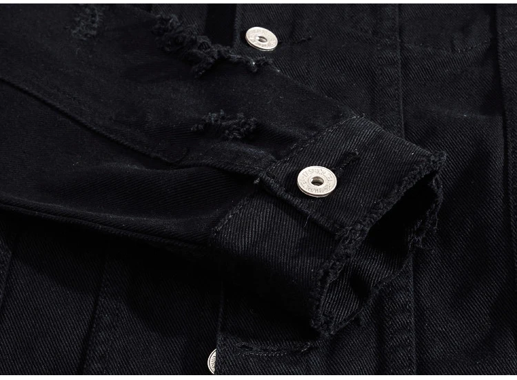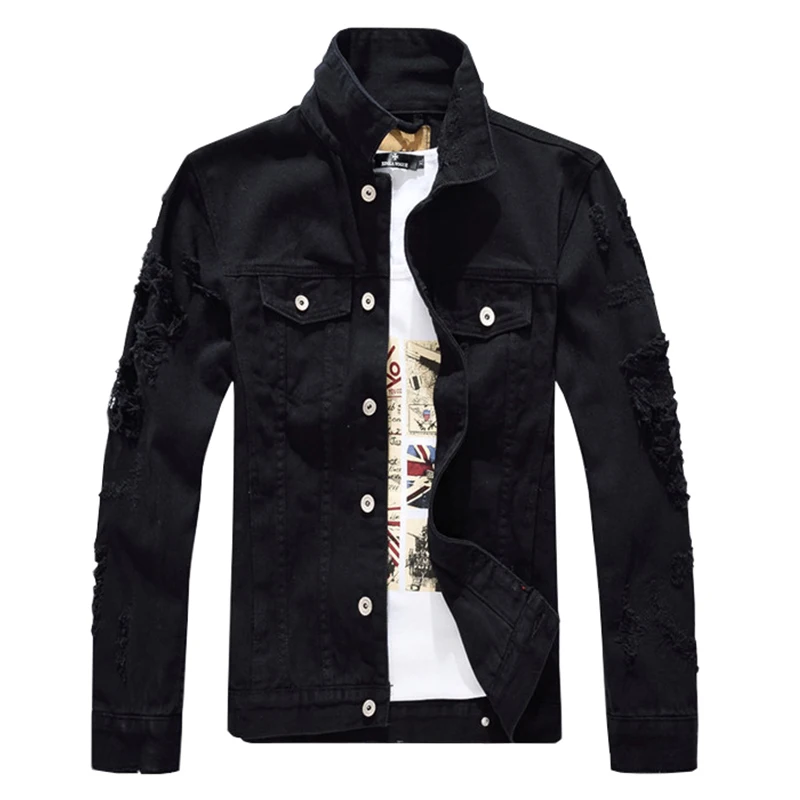 Мужская джинсовая куртка Sokotoo, черная рваная куртка с длинным рукавом, верхняя одежда
