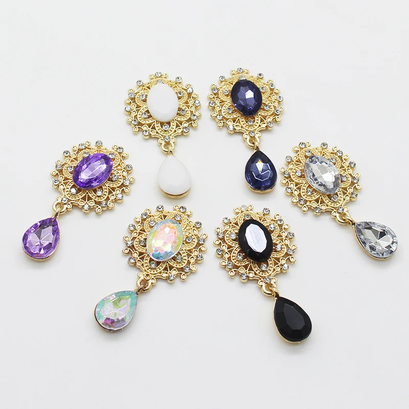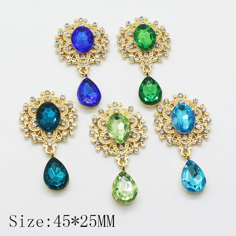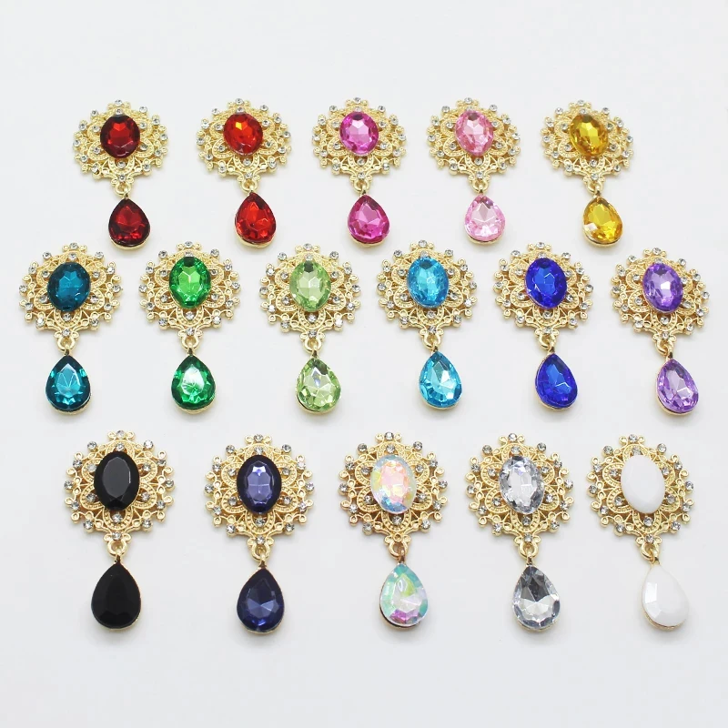 Металлический сплав 10 шт. 45*25 мм Комбинации Стразы падение висячая Пряжка, брошь, DIY ручной работы вечерние банкетные производства
