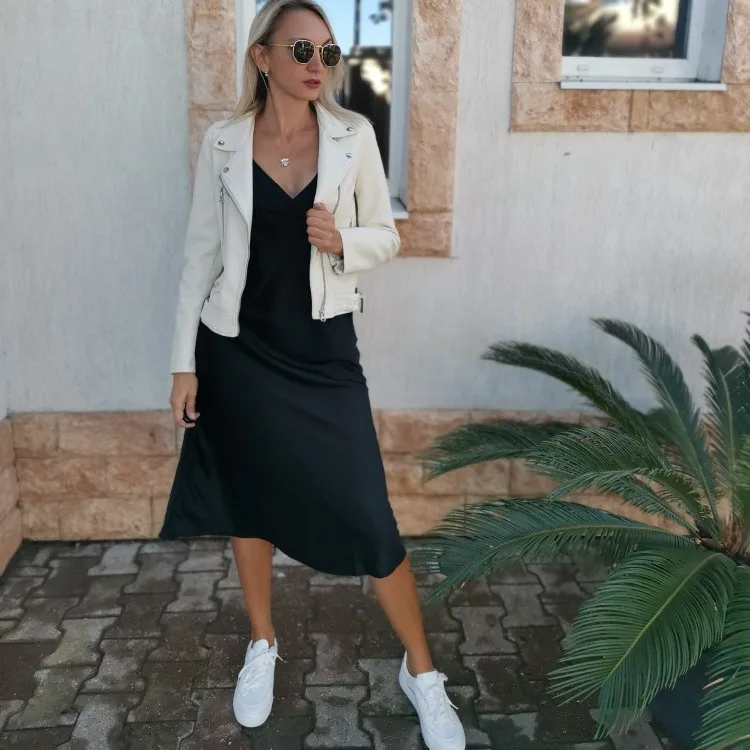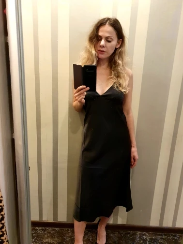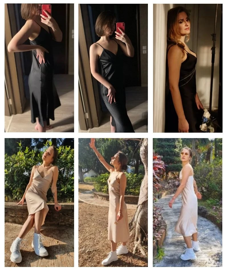 Платье очень мне понравилось. Можно комбинировать с разной одеждой, с пиджаком, джинсовкой, свитером и т.д. Вообщем и в пир, и в мир в нем. И для вечернего варианта, кстати, тоже подойдёт. Главное правильно подобрать аксессуары. Я выбрала в чёрном цвете, размер S. Ткань шёлк, полиэстер, очень приятная к телу. Не электризуется. На мой рост 171, ог-87, от-69, об-95, село прекрасно. Платье лёгкое, смотрится очень красиво. На бретельках, можно регулировать длину. Длина чуть ниже колена. Качество хорошее, швы ровные. Доставка быстрая с отслеживанием, упаковано в пакетик.
