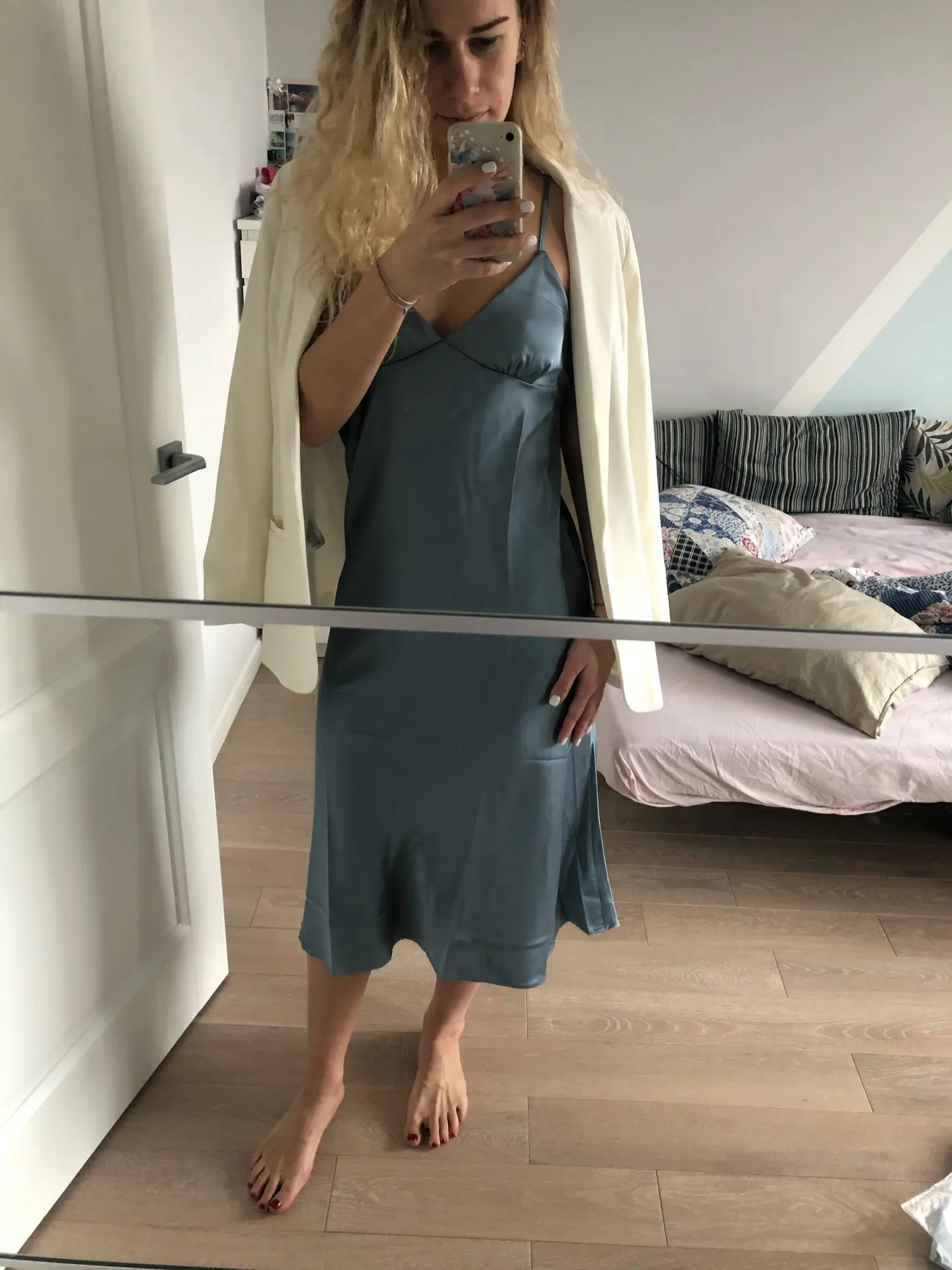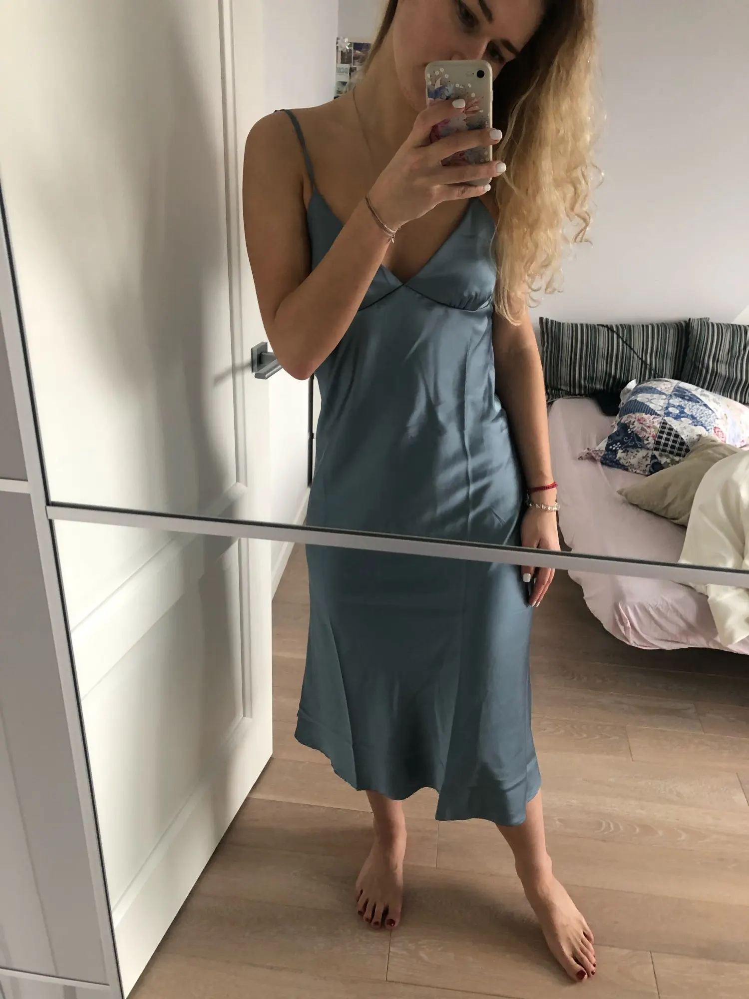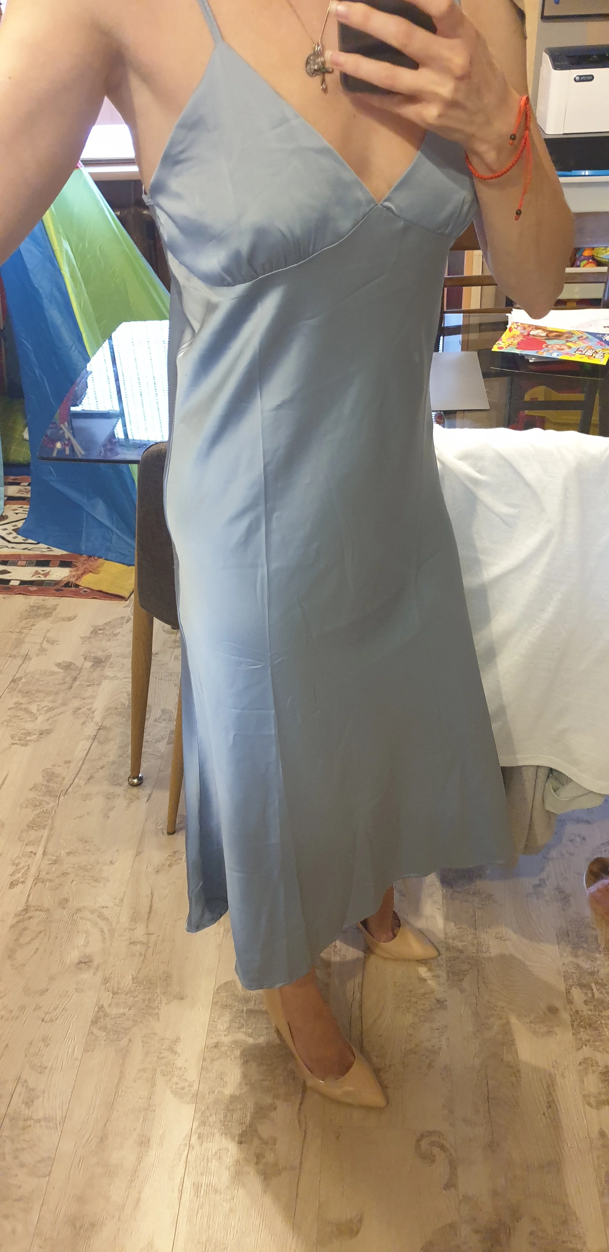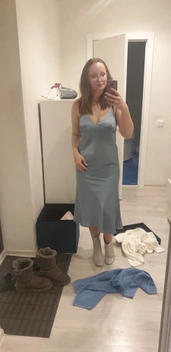 Отличное платье комбинация.Большое на мои скромные 158см и 46 кг веса , но это моя вина, надо больше кушать ))) В размере xs было бы лучше , но его нет в размерной сетке продавца. Как будет , куплю ещё голубое.Оно мне по цветотипу больше подойдёт. Не стала заказывать сразу 2, т к предвидела, что будет большим. Инст @nelyablondy