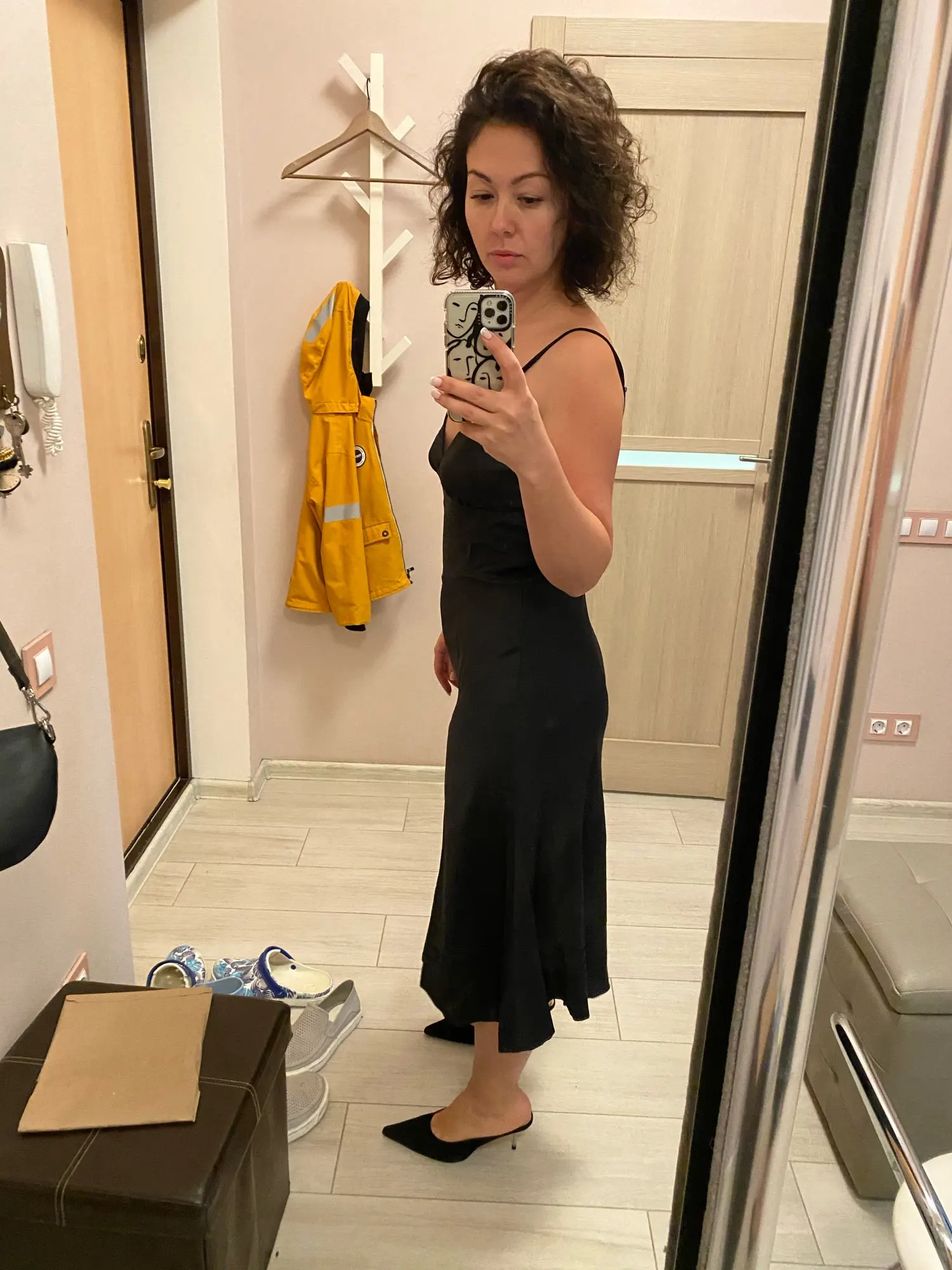 Платье шикарное, пришло быстро, упаковано хорошо, ткань струящаяся и приятная! Крой замечательный, недостатки скрывает, достоинства подчеркивает, можно придумать очень много разных образов и на повседневку, и на вечер) и с кросами, и с туфельками, и ботинками. Торчит только она ниточка, нестрашно. Один минус - регулировщики лямок не совсем хорошо держатся, ну то есть могут произвольно удлинять лямки, но хорошо, что эти регуляторы вообще есть. Ношу, не хочу вылезать!) берите, не пожалеете)