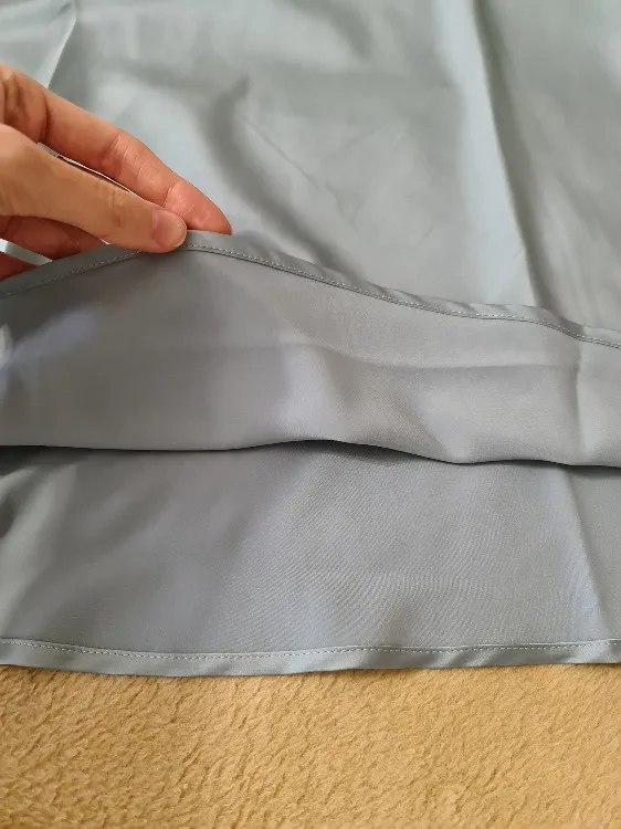 от платья в восторге. боялась по отзывам что ткань будет сильно блестеть ,выглядеть дёшево и будет грубая. ничего этого нет. чуть выглядят швы неаккуратно ТК торчат нитки ,но за эти деньги это нормально. размер XXL на российский 50 сел хорошо и суток свободно- в общем именно так как хотела и как модно. цвет очень красивый, сложный, не смотрится дёшево и как ночнушка ,белокожим и светловолосым однозначно идёт