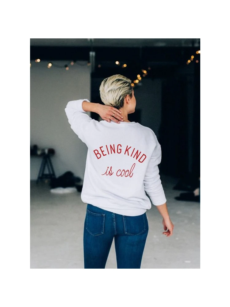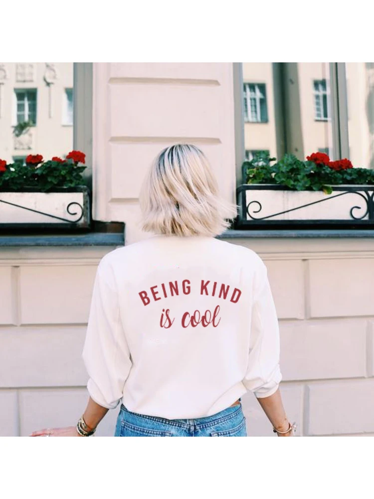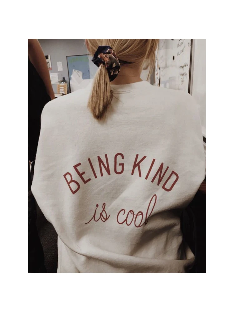 Женский свитшот с надписью Be Kind Is Cool, в стиле Харадзюку, уличная одежда, Свободный Топ большого размера